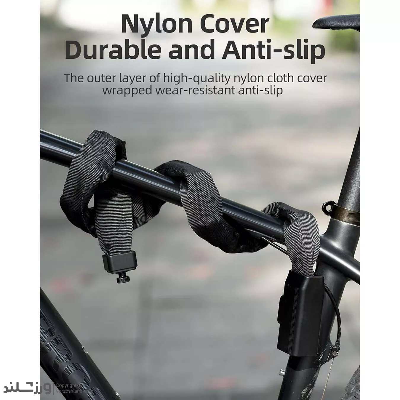 • بدنه قفل و اجزای دیگر از ABS پلاستیک مهندسی🧤 روکش: روکش برقع/نایلونی روی زنجیر برای محافظت از رنگ بدنه دوچرخه و جلوگیری از خراش