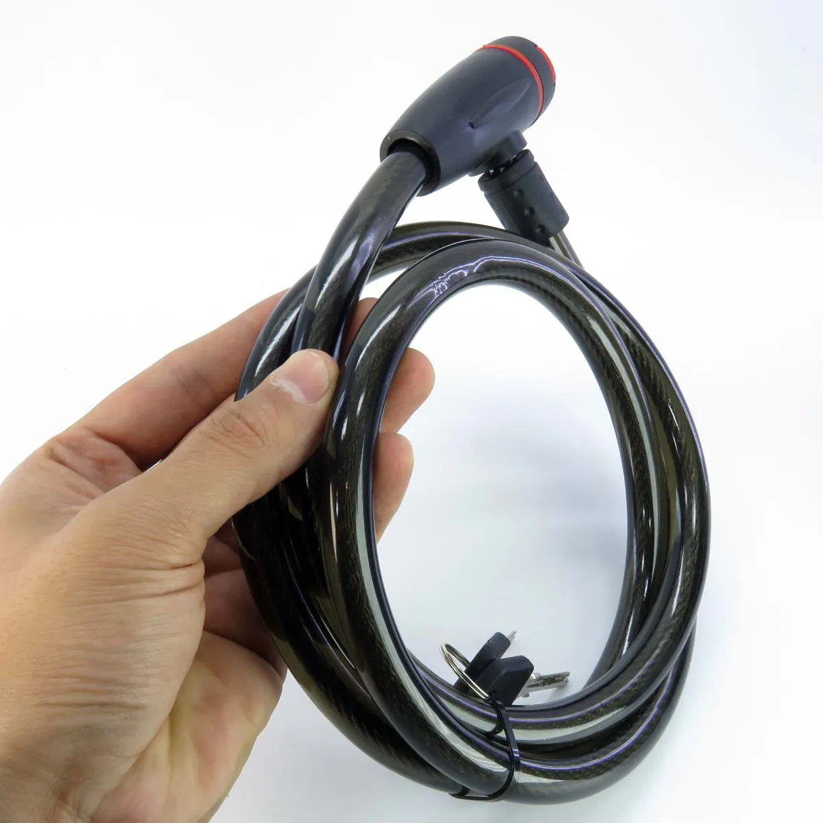 ضخامت 18 میلیمتری این قفل، یک مزیت قابل توجه نسبت به مدلهای رایج بازار است. این ضخامت بالا، آن را در برابر برش با ابزارهای دستی یا سیمبرهای قوی بسیار مقاوم میسازد. لایه بیرونی از جنس PVC شفاف در سه رنگ جذاب (قرمز، آبی و مشکی) علاوهبر محافظت از کابل در برابر رطوبت و زنگزدگی، ظاهری مدرن و شیک به قفل میدهد.