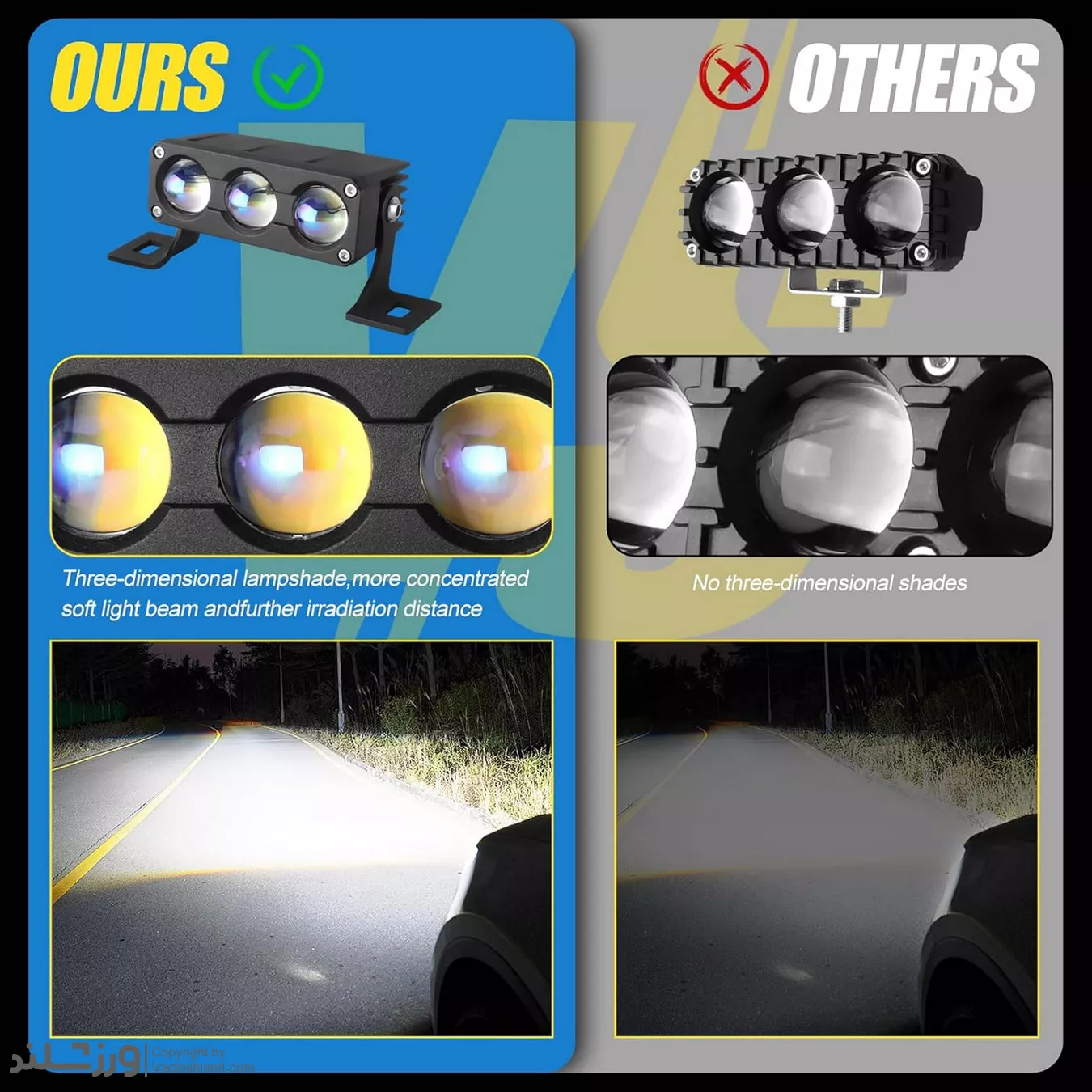 بدنه مقاوم با استاندارد IP67، سیستم خنک‌کننده قدرتمند و طول عمر 30,000 ساعت، دوام و کیفیت بالای این محصول را تضمین می‌کند. پروژکتور سه لنز کد 1992 گزینه‌ای ایده‌آل برای رانندگانی است که به نور قوی، ایمنی و عملکرد حرفه‌ای اهمیت می‌دهند.