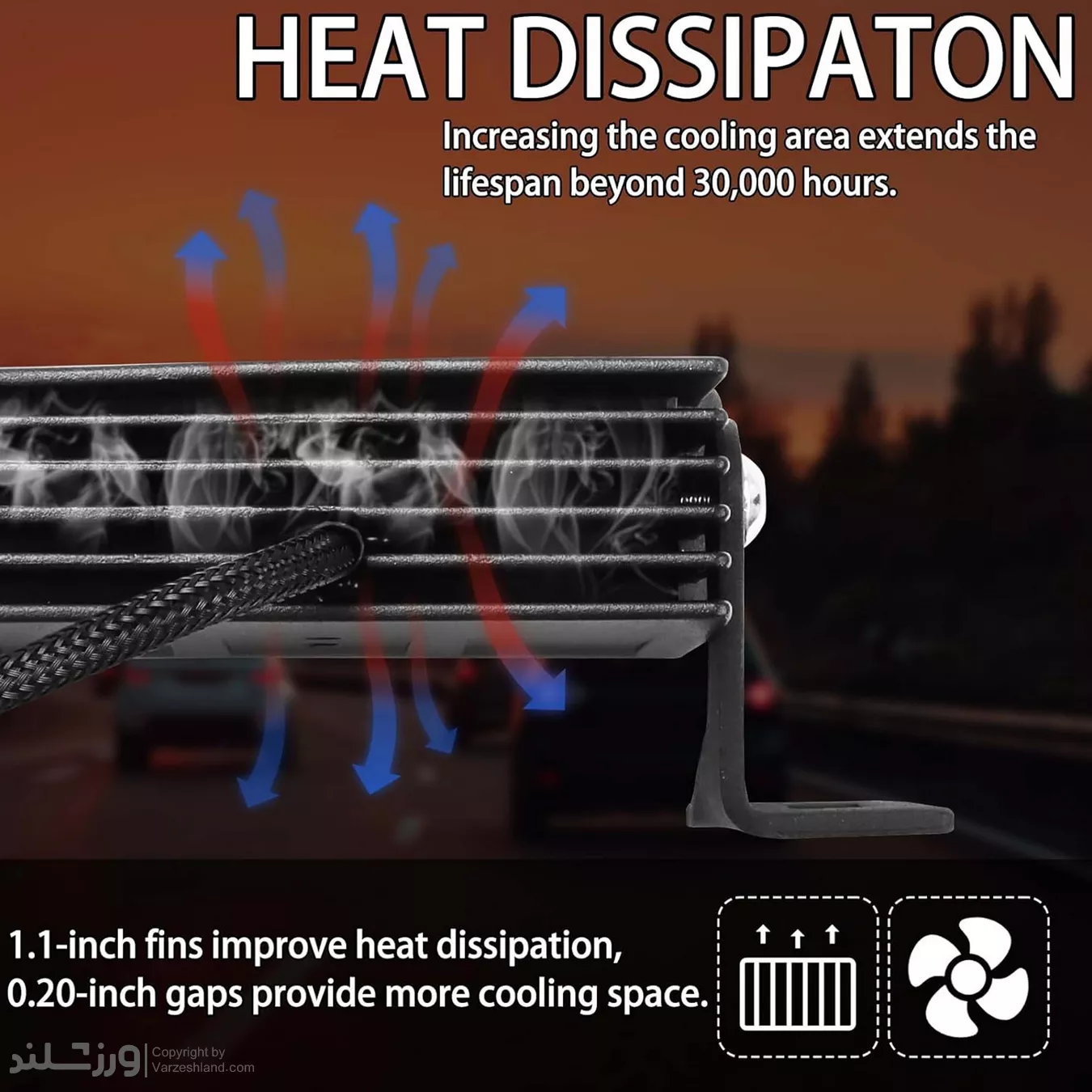 از نظر فنی، این پروژکتور با ولتاژ گسترده 10 تا 80 ولت کار می‌کند و برای سیستم‌های برق 12 ولت و 24 ولت کاملاً مناسب است. بدنه مقاوم با استاندارد IP67، مقاومت بالایی در برابر آب، گردوغبار، گل‌ولای و شست‌وشو دارد. سیستم خنک‌کننده حرفه‌ای و فضای تهویه مناسب (Cooling Space) باعث دفع مؤثر حرارت شده و طول عمر مفید چراغ را تا حدود 30,000 ساعت افزایش می‌دهد.