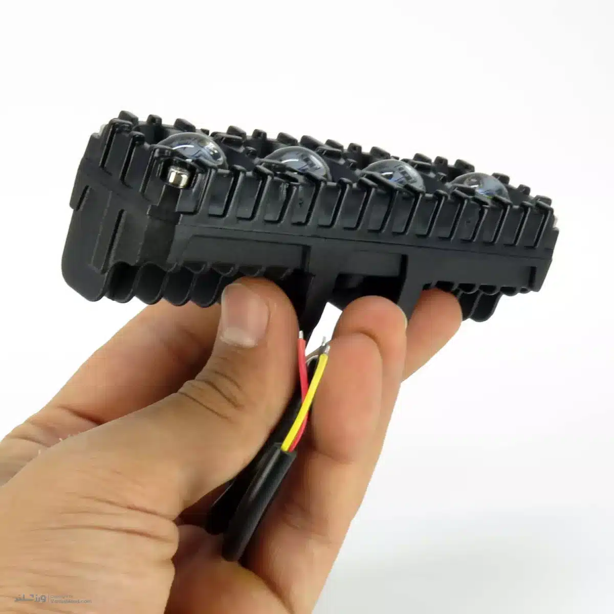 پروژکتور آفرود چهار لنز 100 وات کد 1800؛ ترکیبی از دو پروژکتور 50 وات با نوردهی فوقالعاده قوی و گسترده. مجهز به بدنه آلومینیومی دایکست مقاوم، استاندارد ضدآب و ضدگردوغبار IP67 و چیپهای LED پرقدرت با طول عمر بالا.