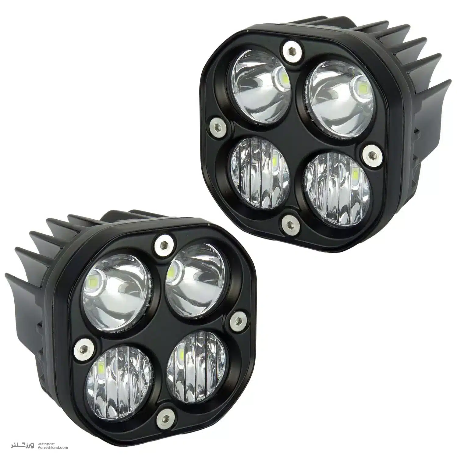 پروژکتور آفرود combo S4 سفید 80 وات کد 1807؛ نسخه دوتایی و قدرتمندتر مدل 40 وات با ترکیب نور متمرکز (Spot) و نور پخش (Flood). مجهز به ۸ لنز LED با توان بالا، بدنه آلومینیومی مستحکم، طراحی ضدحرارت و استاندارد IP67 ضدآب و ضدگردوغبار.