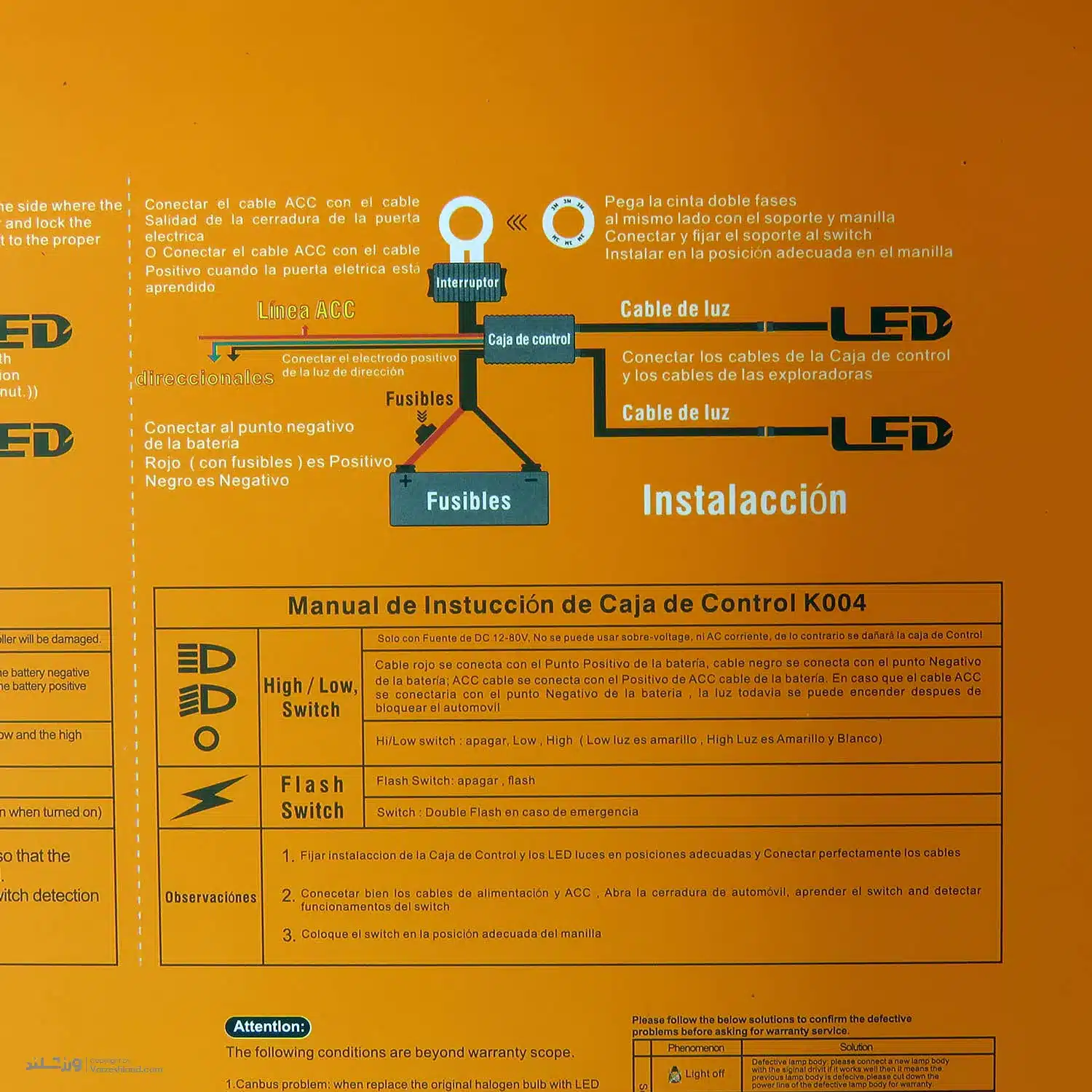 در بستهبندی این محصول، همه چیز برای نصب سریع و آسان در نظر گرفته شده است. وجود کیت کامل سیمکشی، فیوز محافظ، رله، کلیدهای دو حالته و پایه نصب فلزی مقاوم باعث میشود بدون نیاز به خرید تجهیزات اضافی، بتوانید پروژکتور را روی وسیله نقلیه خود نصب و استفاده کنید.