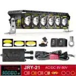 پروژکتور آفرود JRY-21 کد ۱۸۷۵ با توان 100وات و شدت نور ۳۰٬۰۰۰ لومن، یکی از قدرتمندترین پروژکتورهای آفرودی است. این محصول دارای ۶ لنز خطی، نور چندحالته (سفید، زرد، ترکیبی و فلشر)، بدنه ضدآب و ضدگردوغبار، و ولتاژ کاری گسترده ۸ تا ۸۰ ولت میباشد.