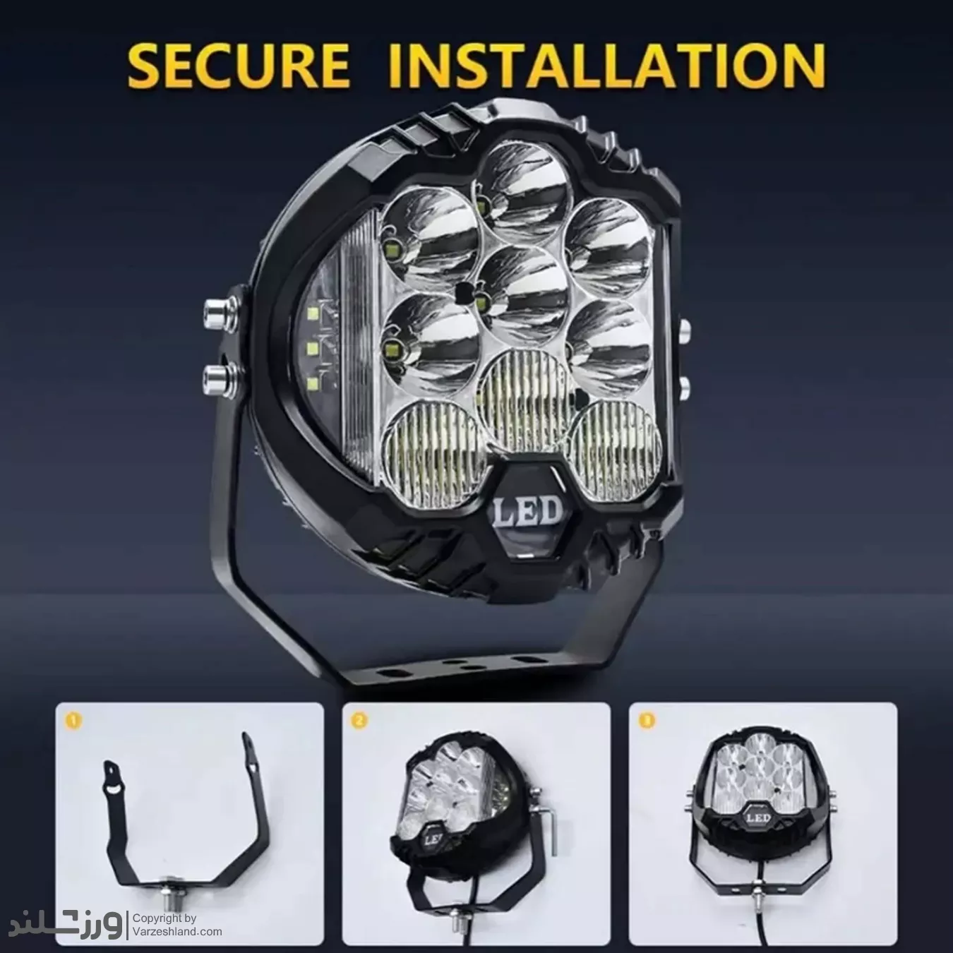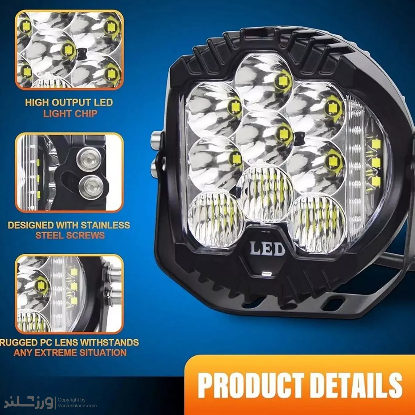 وجود پایه فلزی قابل‌تنظیم امکان تنظیم زاویه نور را بر اساس محل نصب (سپر، گارد، رکاب یا براکت) فراهم می‌کند و نصب جفت چراغ‌ها بسیار راحت و سریع است. ترکیب ابعاد ۵ اینچی و نور سفید قدرتمند، این محصول را برای رانندگی شهری، جاده‌ای و سبک آفرود ایده‌آل کرده است.