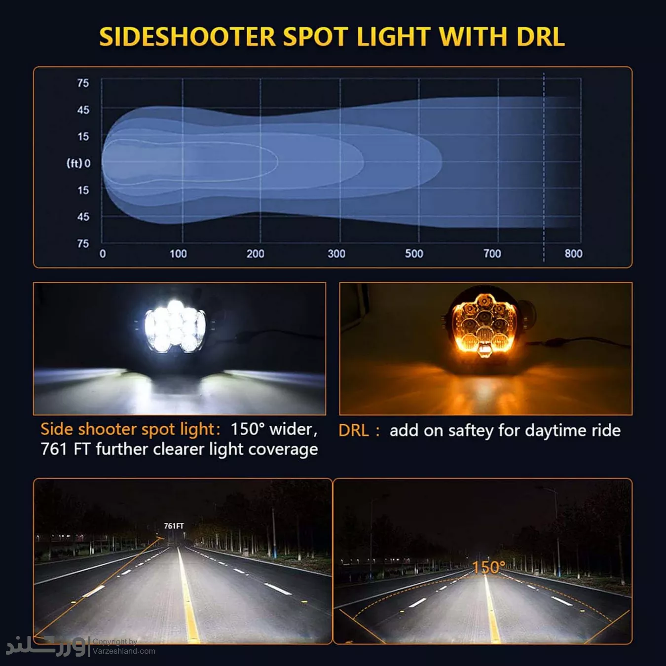 ✔️ الگوی نور: معمولاً Spot یا Combination (نور دوربرد و پخش)