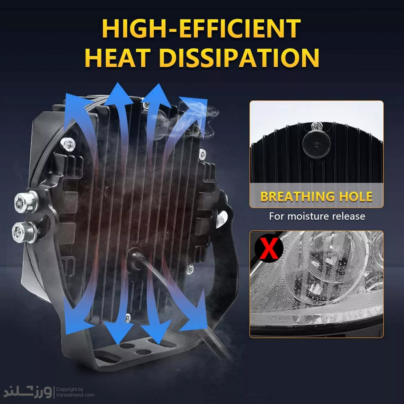بدنه آلومینیومی دایکست با طراحی هیت‌ سینک حرفه‌ ای، باعث دفع مناسب حرارت و افزایش طول عمر چراغ‌ ها می‌شود. لنز مقاوم و شفاف این پروژکتورها نور را به‌ صورت متمرکز و مؤثر پخش می‌کند و برای استفاده در جاده، کوهستان، بیابان و شرایط آب‌ و هوایی سخت کاملاً ایده‌ آل است. استاندارد ضدآب IP67 نیز خیال شما را از بابت نفوذ آب، گل‌ و لای و گردوغبار راحت می‌کند.