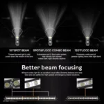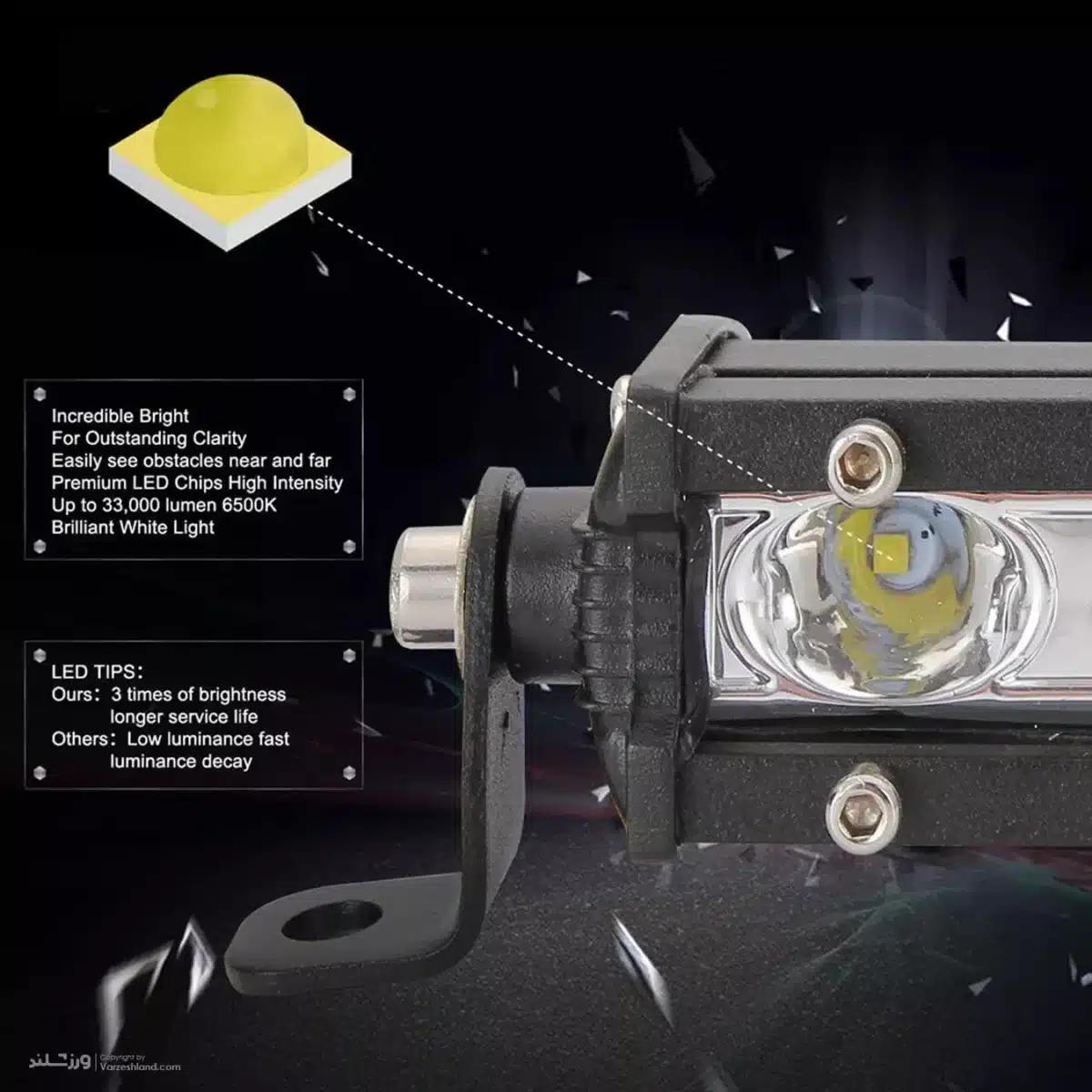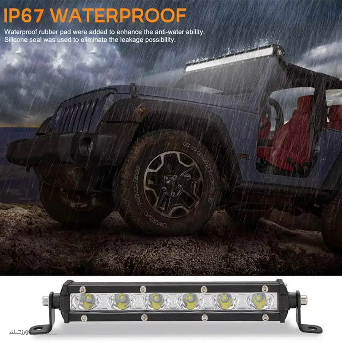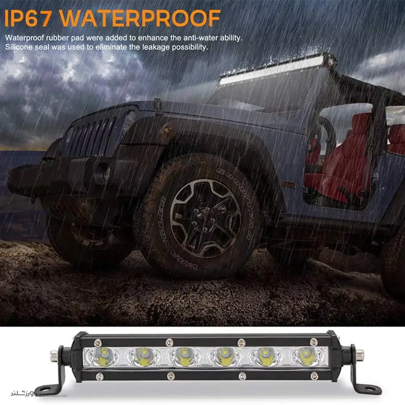 بدنه این چراغ از آلومینیوم دایکاست مقاوم ساخته شده است که علاوه بر استحکام بالا، به لطف شیارهای خنککننده تعبیهشده روی آن، از افزایش دما و آسیب به چیپهای LED جلوگیری میکند. رنگ مشکی مات بدنه نیز باعث شده تا ظاهر این پروژکتور کاملاً اسپرت و هماهنگ با خودروهای آفرود و SUV به نظر برسد.