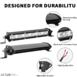 بدنهی این پروژکتور آفرود از جنس آلومینیوم دایکاست ساخته شده که مقاومت بالایی در برابر ضربه، حرارت و شرایط سخت محیطی دارد. پوشش ضدآب استاندارد IP67 نیز تضمین میکند که در برابر باران، گل و گردوغبار دچار آسیب نشود. در هر پروژکتور آفرود 6 عدد LED قدرتمند با لنزهای شفاف و دقیق تعبیه شده که ترکیبی از نور متمرکز و پخش را ارائه میدهند تا هم مسیرهای دور و هم اطراف شما بهخوبی روشن شوند.