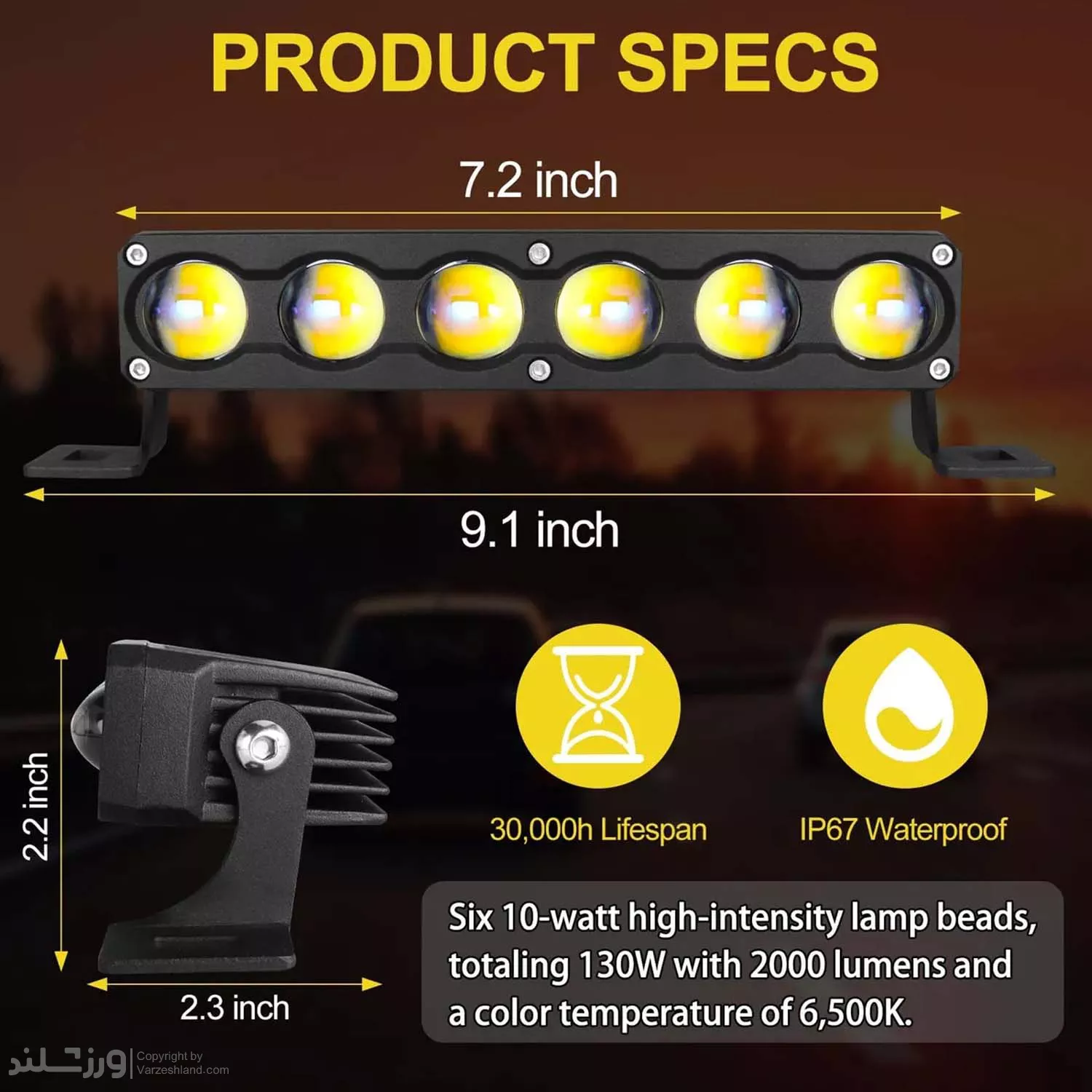 پروژکتور شش لنز مستطیلی 7اینچ 260وات کد 1977 یک نورافکن قدرتمند و چندحالته برای خودروهای آفرودی و مصارف حرفه‌ای است. این پروژکتور با توان مصرفی 130 وات و نوردهی 2000 لومن واقعی برای هر عدد، روشنایی یکنواخت و مؤثری نسبت به نور فابریک خودرو با 800 لومن ایجاد می‌کند. طراحی شش لنز با فناوری Lumen Compression باعث پخش کنترل‌شده نور و افزایش دید در شب می‌شود. این مدل دارای سه حالت نوردهی شامل نور سفید، زرد و ترکیبی زرد و سفید است که استفاده در شرایط مختلف مانند مه، باران و گردوغبار را آسان می‌کند.