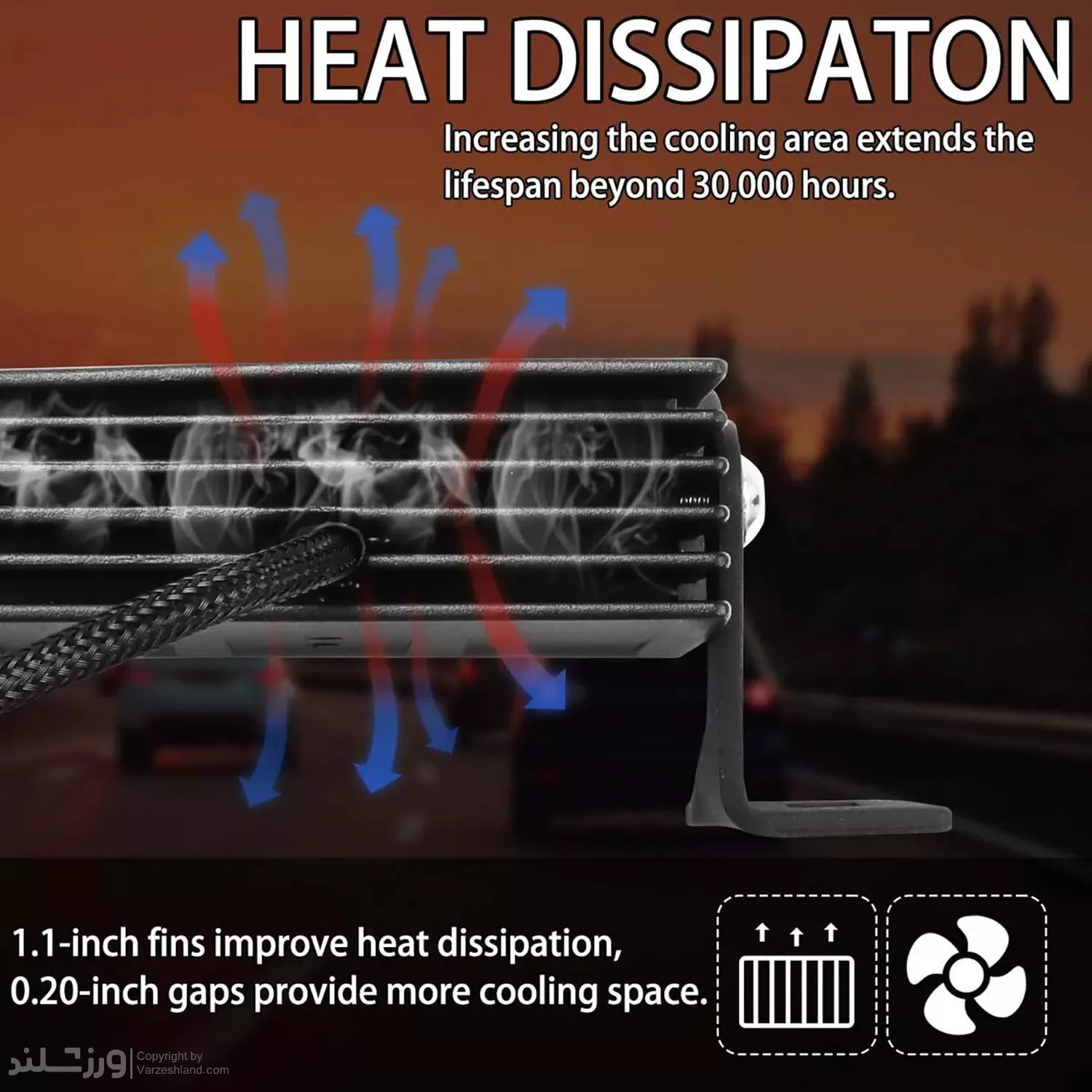 دمای رنگ نور سفید 6500 کلوین، دیدی شفاف و واضح فراهم می‌سازد. سیستم دفع حرارت پیشرفته با فضای خنک‌کننده، طول عمر 30 هزار ساعت را تضمین می‌کند. استاندارد IP67 مقاومت بالا در برابر آب و گردوغبار را فراهم کرده و این پروژکتور را به انتخابی مطمئن برای شرایط سخت تبدیل می‌کند.