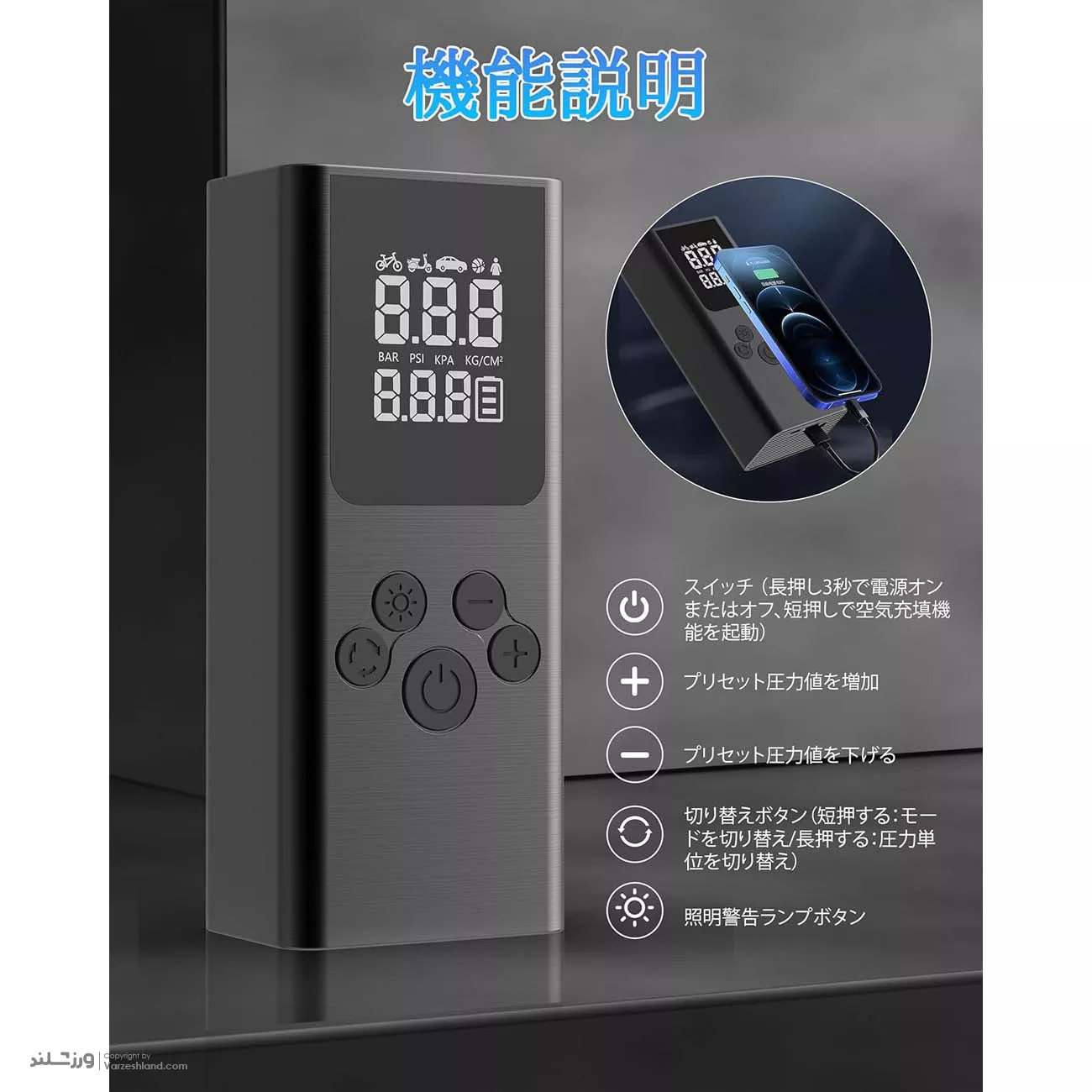 این پمپ باد مجهز به یک نمایشگر LED شفاف است که میزان فشار باد تایر را بهصورت دقیق نمایش میدهد. قابلیت نمایش فشار در واحدهای مختلف (PSI، BAR یا Kg/cm²) باعث میشود تا بتوانید با توجه به نیاز خود بهترین تنظیم را داشته باشید. علاوه بر این، نشانگر سطح باتری روی صفحه نمایش داده میشود تا همیشه از میزان شارژ دستگاه مطمئن باشید.