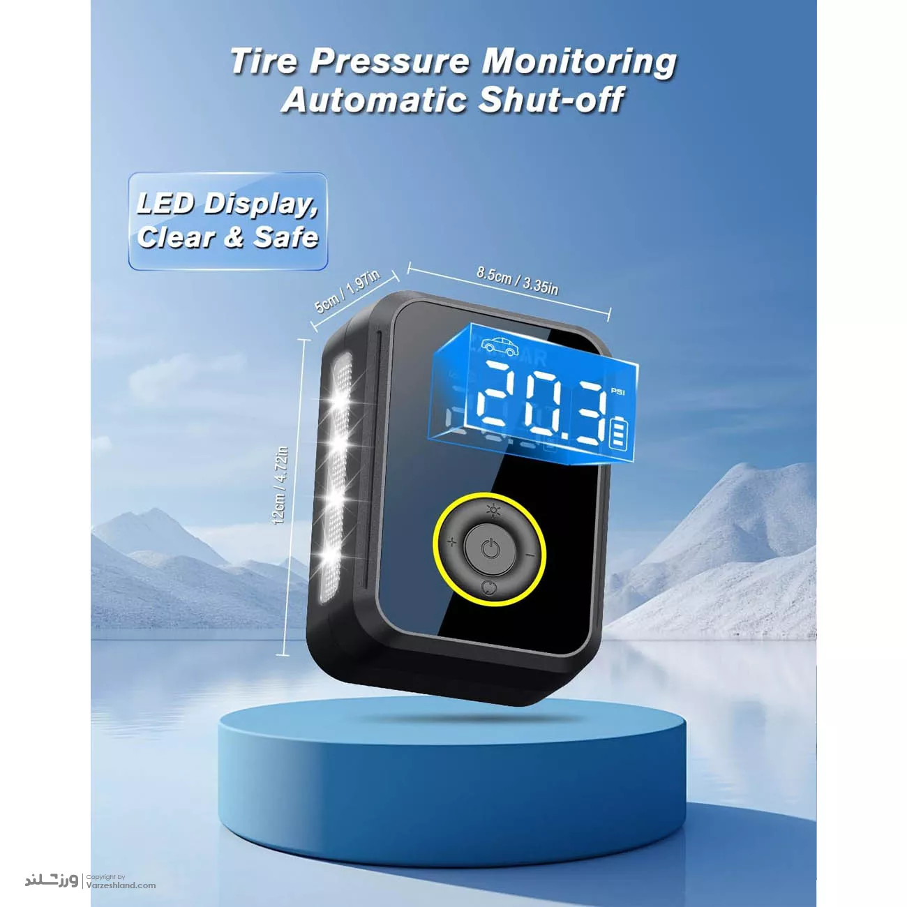 این پمپ باد مجهز به یک نمایشگر LED دیجیتال بزرگ است که فشار باد را در واحدهای مختلف (PSI، BAR، KPA) نشان می‌دهد. علاوه بر این، سطح شارژ باتری نیز روی صفحه به‌صورت دقیق نمایش داده می‌شود. این قابلیت کمک می‌کند همیشه قبل از سفر از آمادگی کامل دستگاه مطمئن باشید.