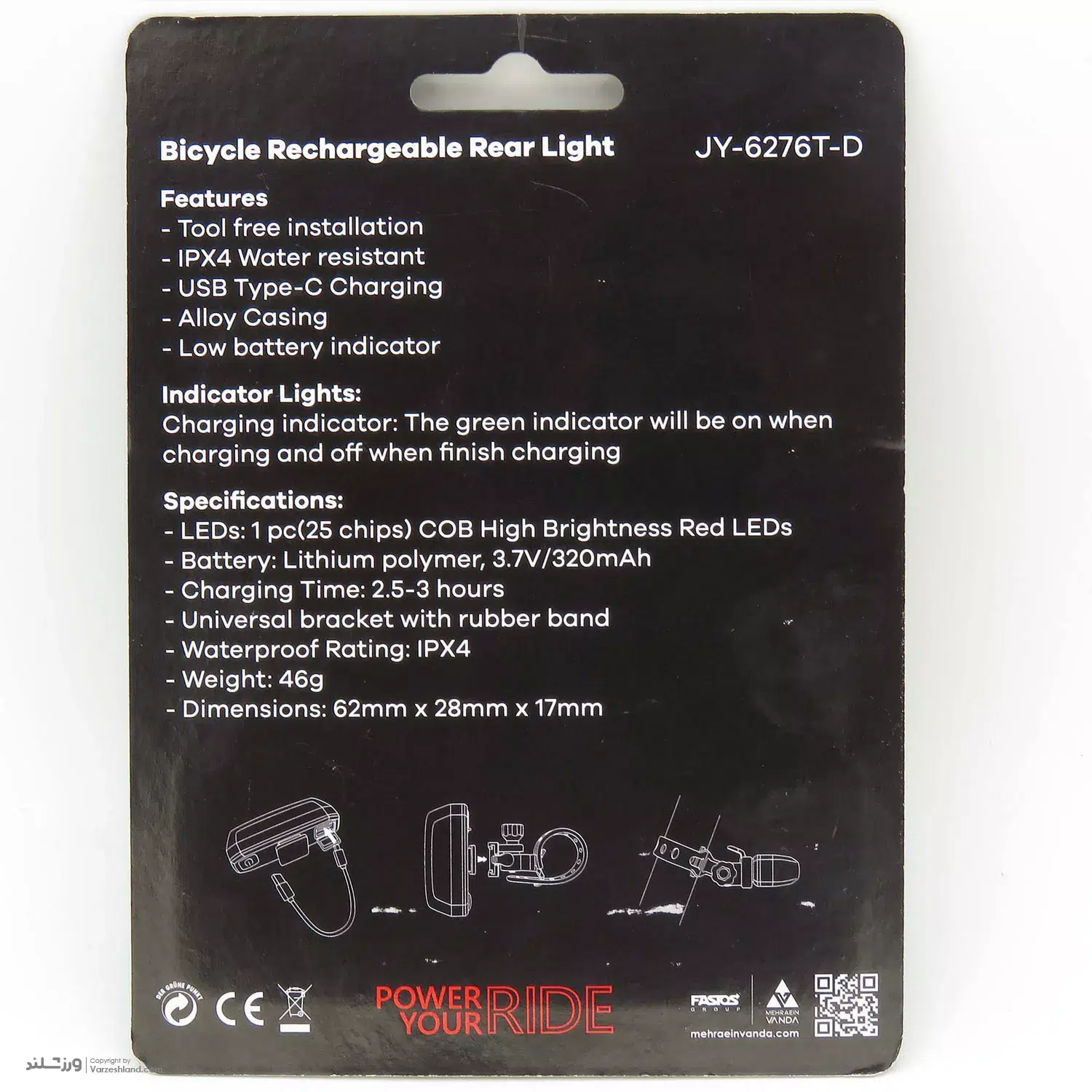 نصب این چراغ بسیار ساده و بدون نیاز به ابزار خاص انجام میشود. پایهی کشویی قابل تنظیم آن باعث میشود به راحتی بر روی انواع فرمان دوچرخهها قرار گیرد. همچنین بدنه مقاوم در برابر پاشش آب، این چراغ را برای استفاده در شرایط مختلف آبوهوایی نیز مناسب کرده است.