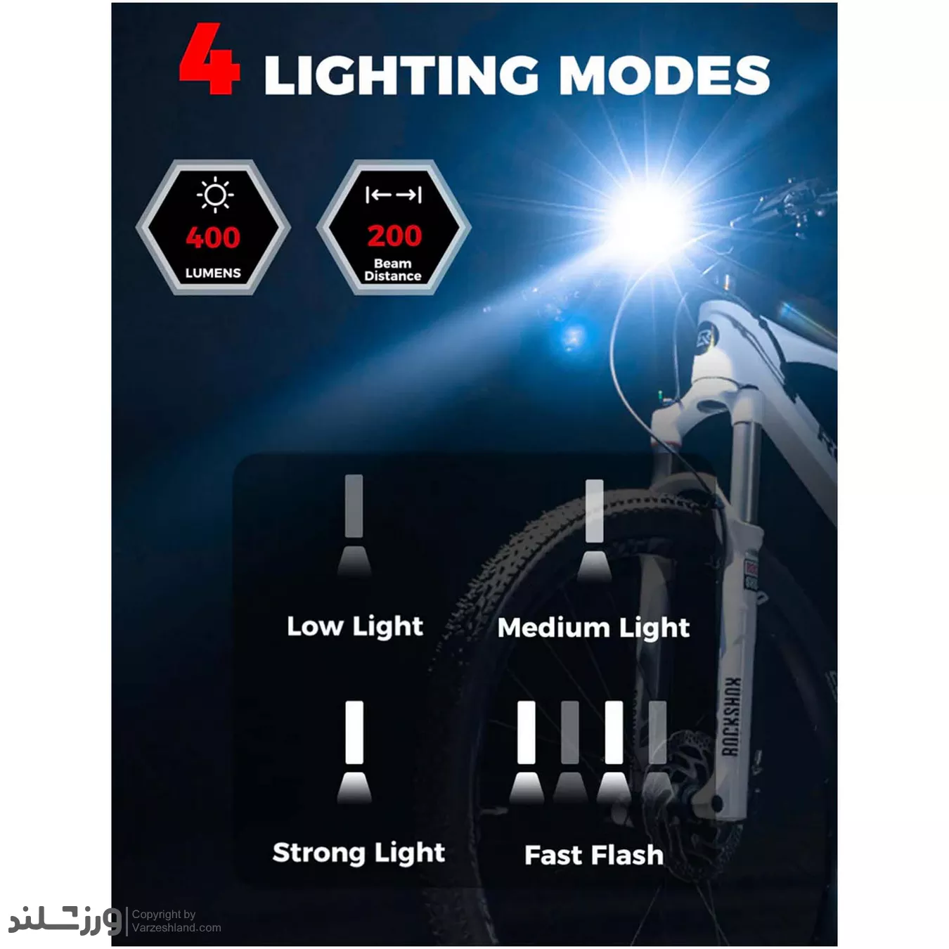 چراغ جلو ضدآب 400 لومن راک براس کد 2064 با قدرت نوردهی ۴۰۰ لومن، گزینه ای ایده آل برای افزایش ایمنی در دوچرخه سواری شبانه و شرایط کمنور است. این چراغ با طراحی مینیمال و وزن سبک، بهراحتی روی انواع فرمان دوچرخه نصب میشود و بدون ایجاد مزاحمت، دید مناسبی از مسیر پیشرو فراهم میکند. استفاده از LED پرقدرت باعث تولید نور یکنواخت و شفاف شده و چند حالت نوردهی مختلف، امکان تنظیم نور متناسب با شرایط محیط را فراهم میسازد.