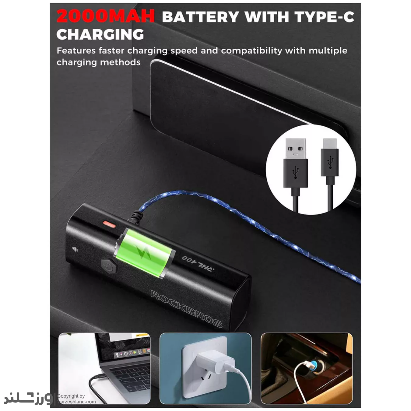 باتری لیتیومی داخلی با قابلیت شارژ USB، استفاده اقتصادی و بدون نیاز به باتریهای یکبار مصرف را ممکن کرده است. بدنه مقاوم و طراحی ضد پاشش آب، عملکرد مطمئن چراغ را در هوای بارانی تضمین میکند. چراغ جلو RockBros انتخابی کاربردی و مقرون به صرفه برای دوچرخه سواران شهری و روزمره محسوب میشود.