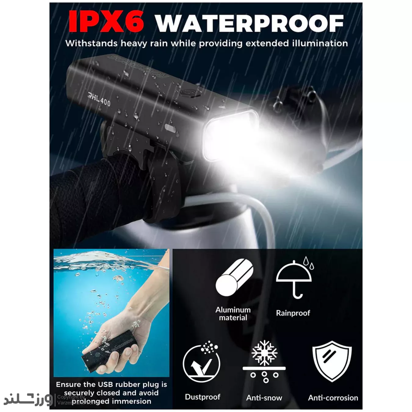 چراغ جلو ضدآب 400 لومن راک براس کد 2064 با قدرت نوردهی ۴۰۰ لومن، گزینهای کاربردی و ایمن برای دوچرخهسواری در شب و مسیرهای کمنور شهری است. این چراغ با بهرهگیری از LED پرقدرت، نوری یکنواخت و شفاف تولید میکند که دید مناسب مسیر و افزایش ایمنی را فراهم میسازد. طراحی سبک و جمعوجور در کنار بست سیلیکونی قابل تنظیم، نصب سریع و بدون ابزار را روی انواع فرمان دوچرخه ممکن کرده است.