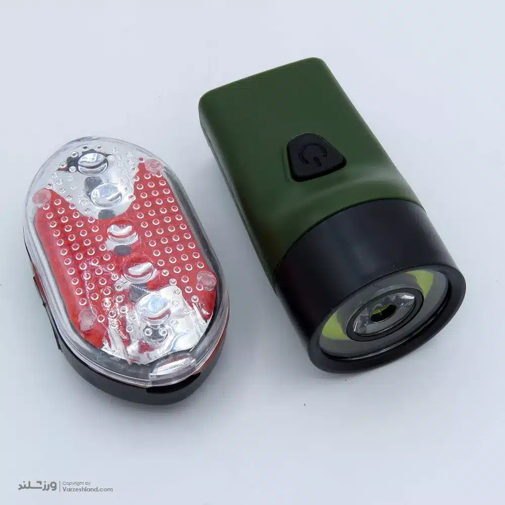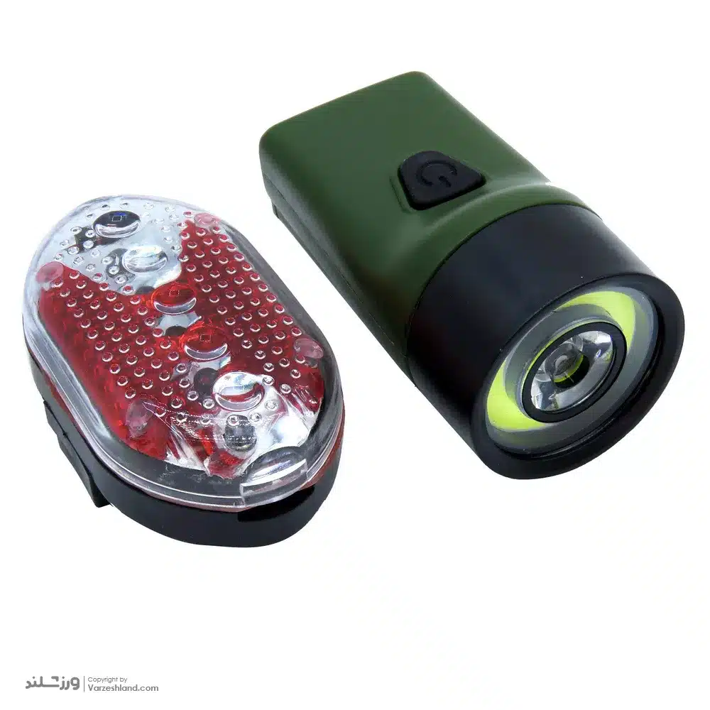 چراغ جلوی این ست از یک لامپ LED پرقدرت بهره میبرد که نور سفید و متمرکز تولید میکند و محدوده وسیعی را در جلوی دوچرخه روشن میسازد. این نور برای مسیرهای تاریک، جادههای بینور یا سواری در شب بسیار مناسب بوده و دید شما را تا چندین متر افزایش میدهد.
