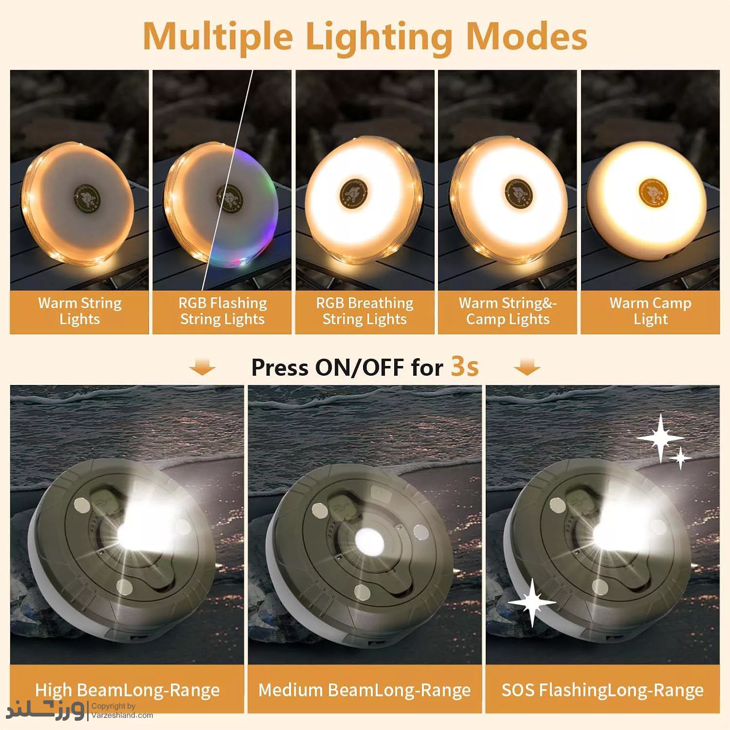 • حالت نور: ۸ حالت نوری متنوع
