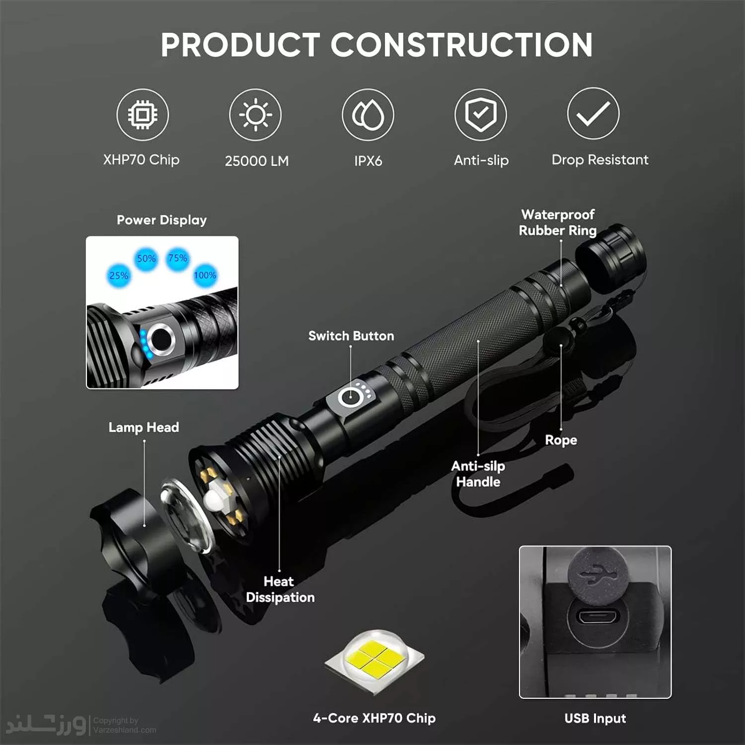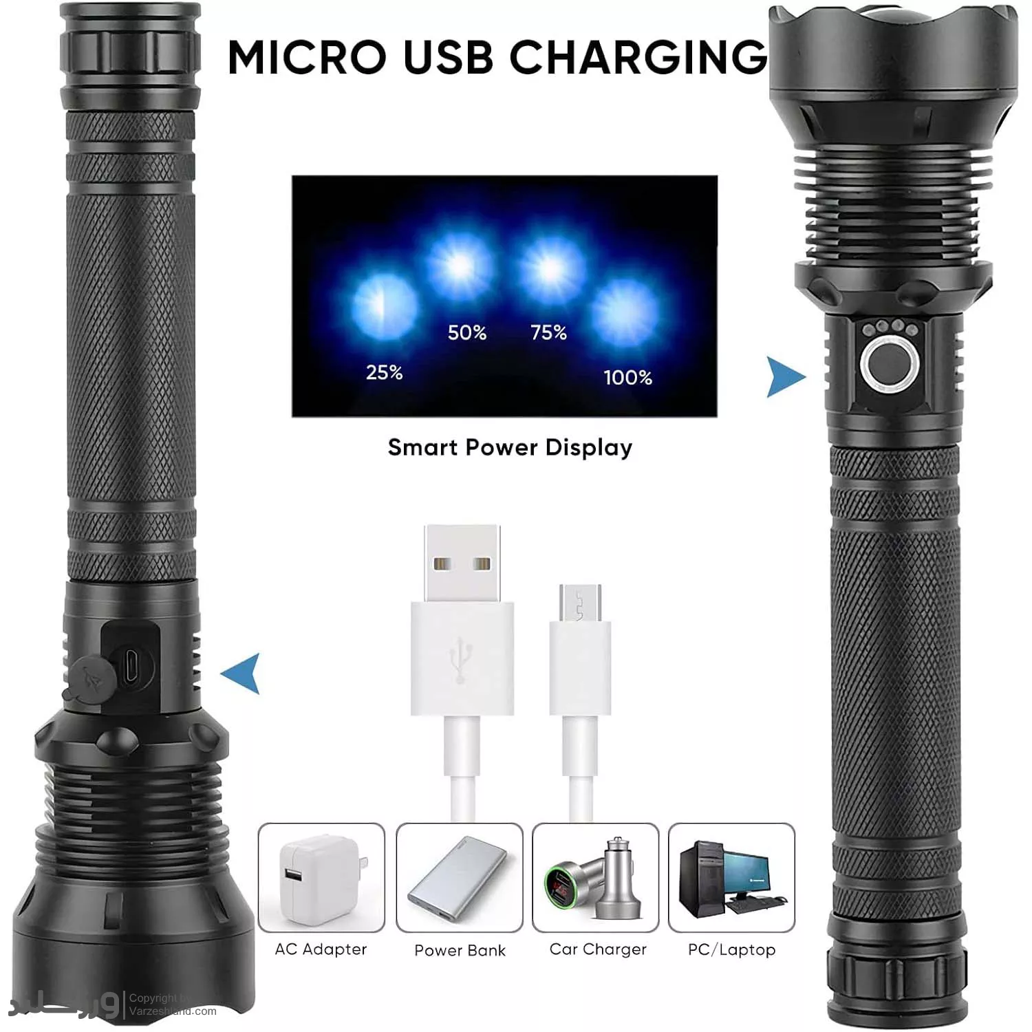 ✔ استفاده از دو باتری 26650 قدرتمند