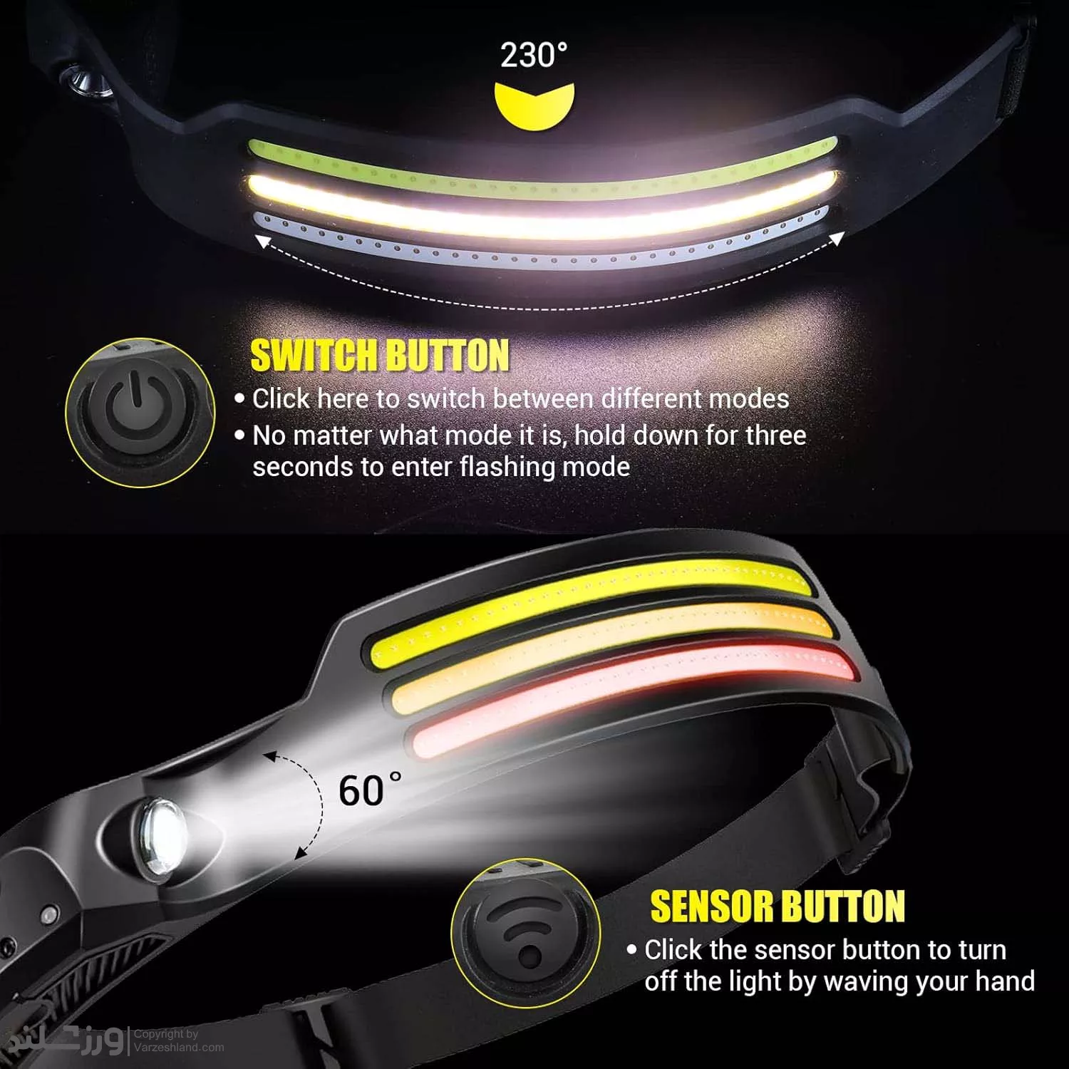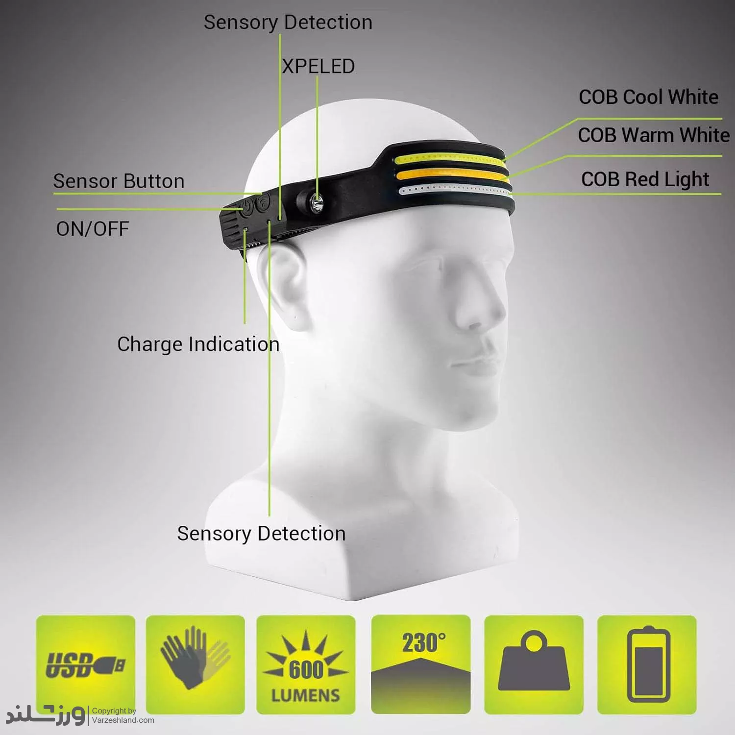نوع محصول: هدلامپ ژله‌ای چندمنظوره با سنسور حرارتی و روشنایی چند حالت