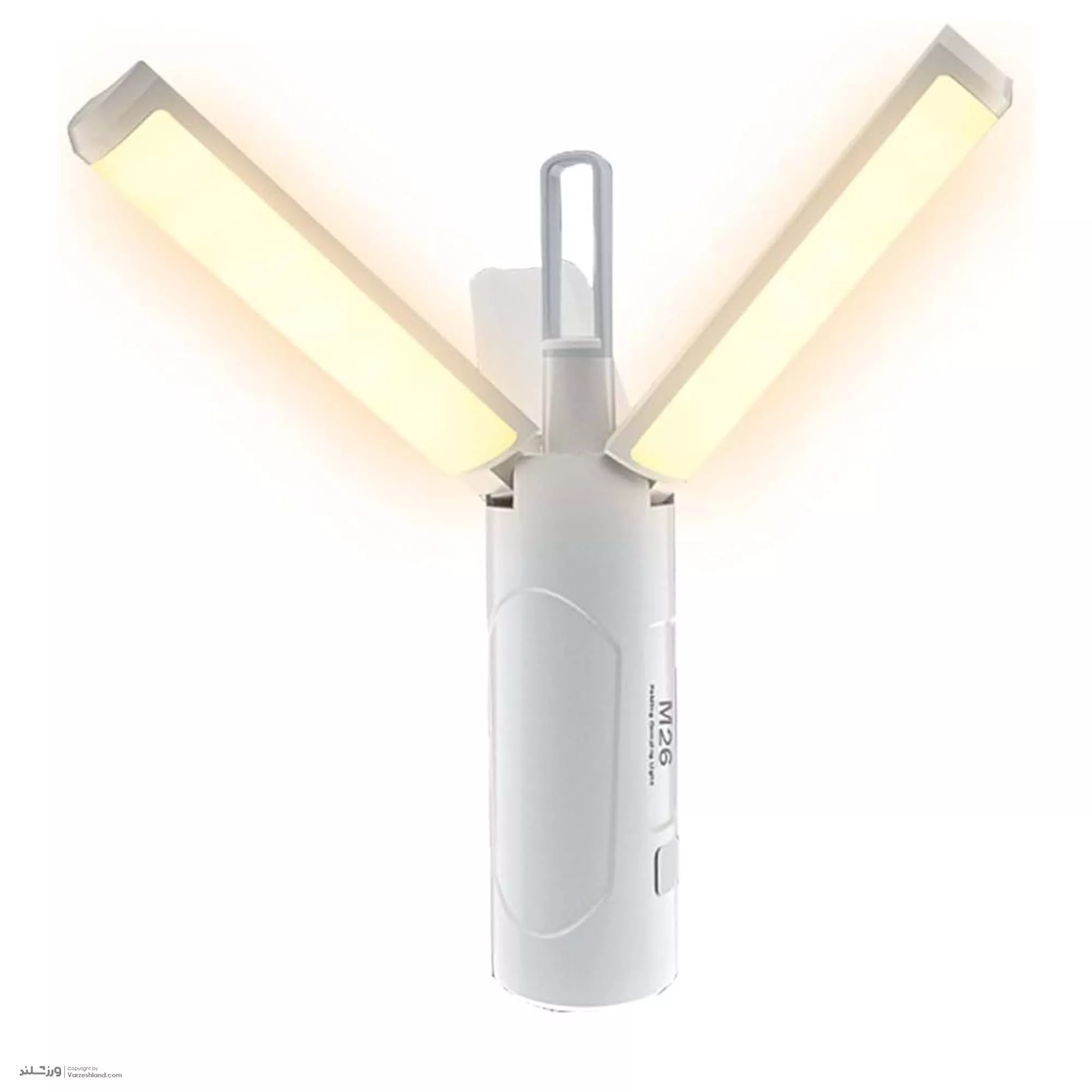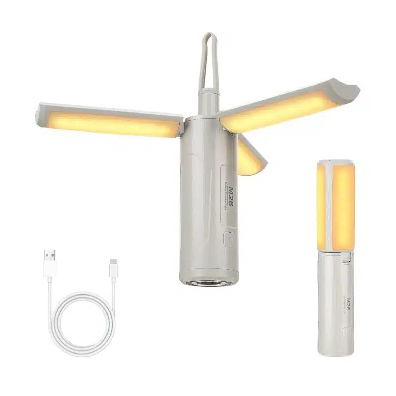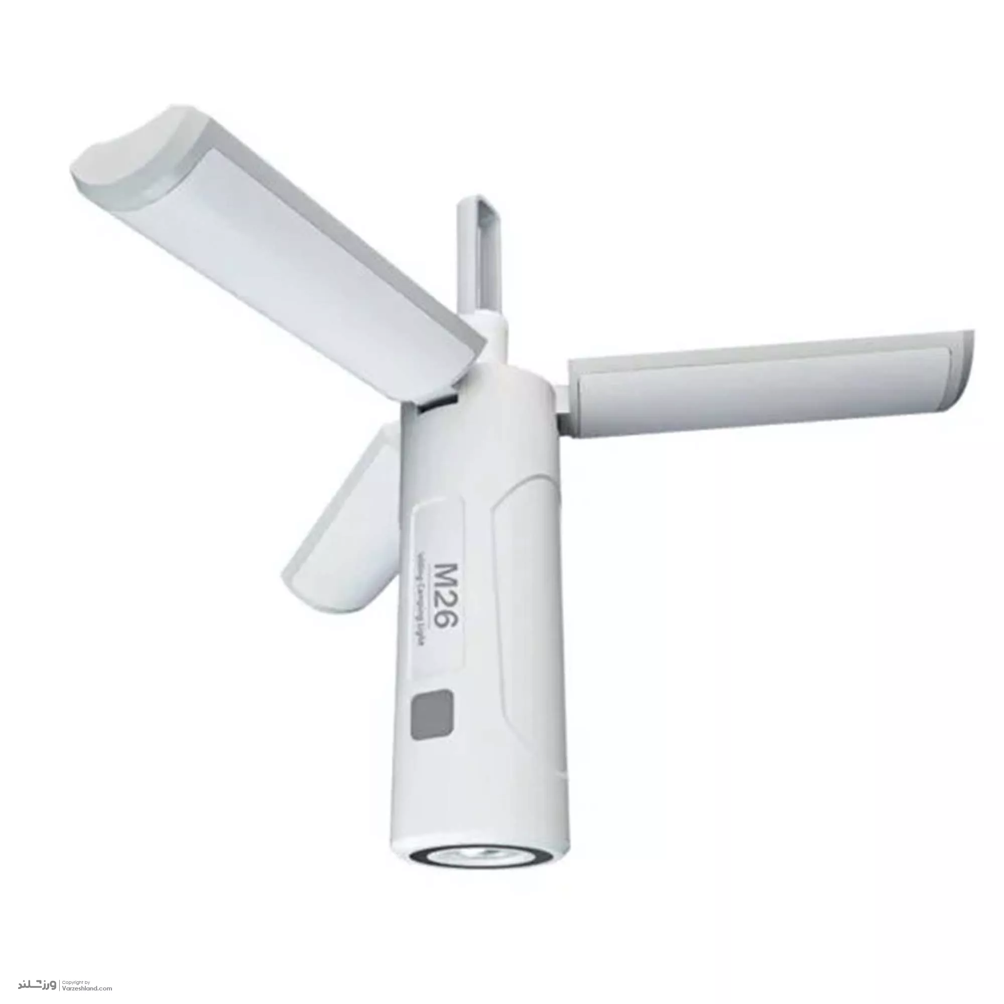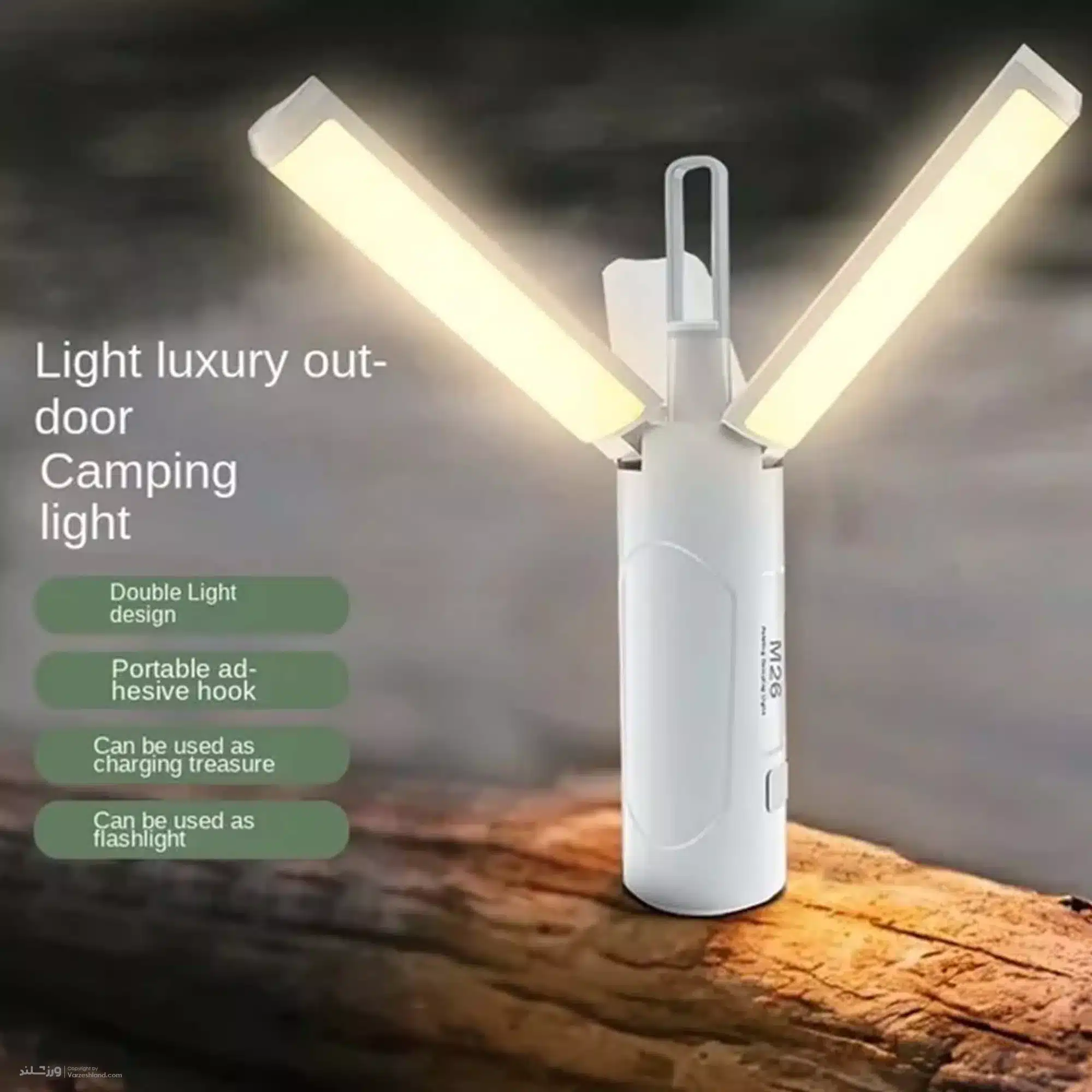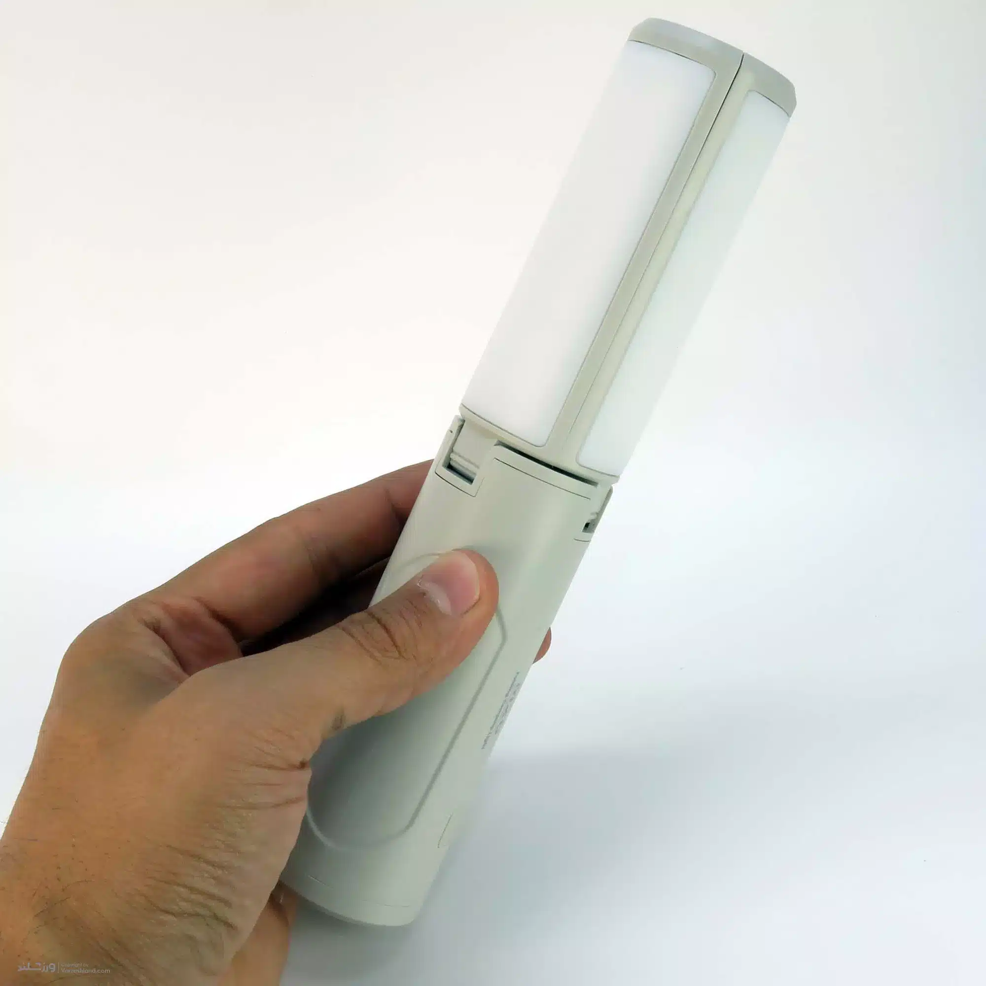 ویژگی بارز این چراغ، بازوهای تاشو و نوردهی ۳ جهته است که پس از باز شدن، نوری بسیار گسترده و یکنواخت در محیط پخش میکند. طراحی نوآورانه بازوهای LED باعث میشود تا بهراحتی زاویه نور را تنظیم کرده و محیط اطراف را به دلخواه روشن کنید. وقتی بازوها جمع میشوند، چراغ حالت دستی و متمرکز پیدا میکند و میتوان از آن بهعنوان چراغ قوه یا چراغ مطالعه نیز استفاده کرد.
