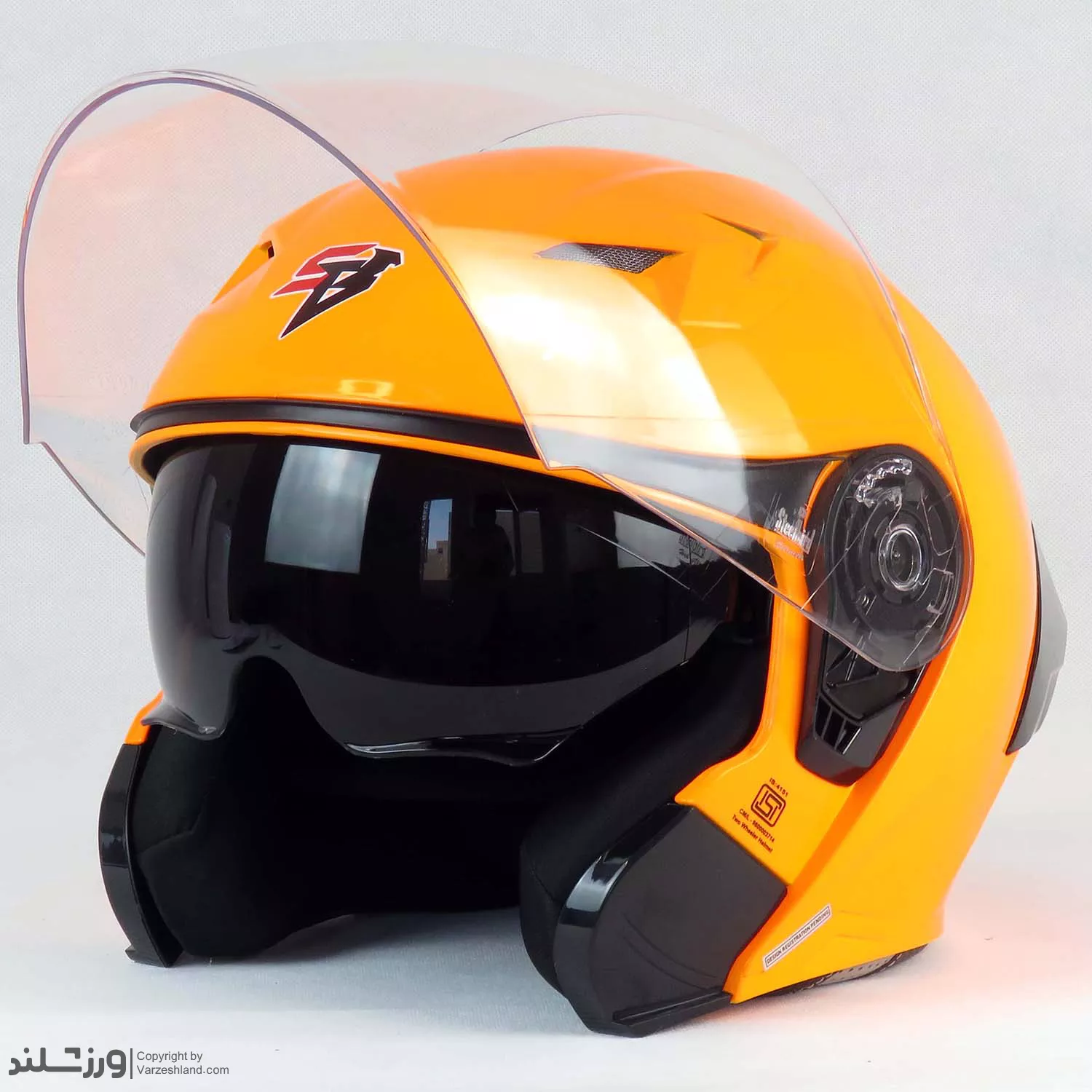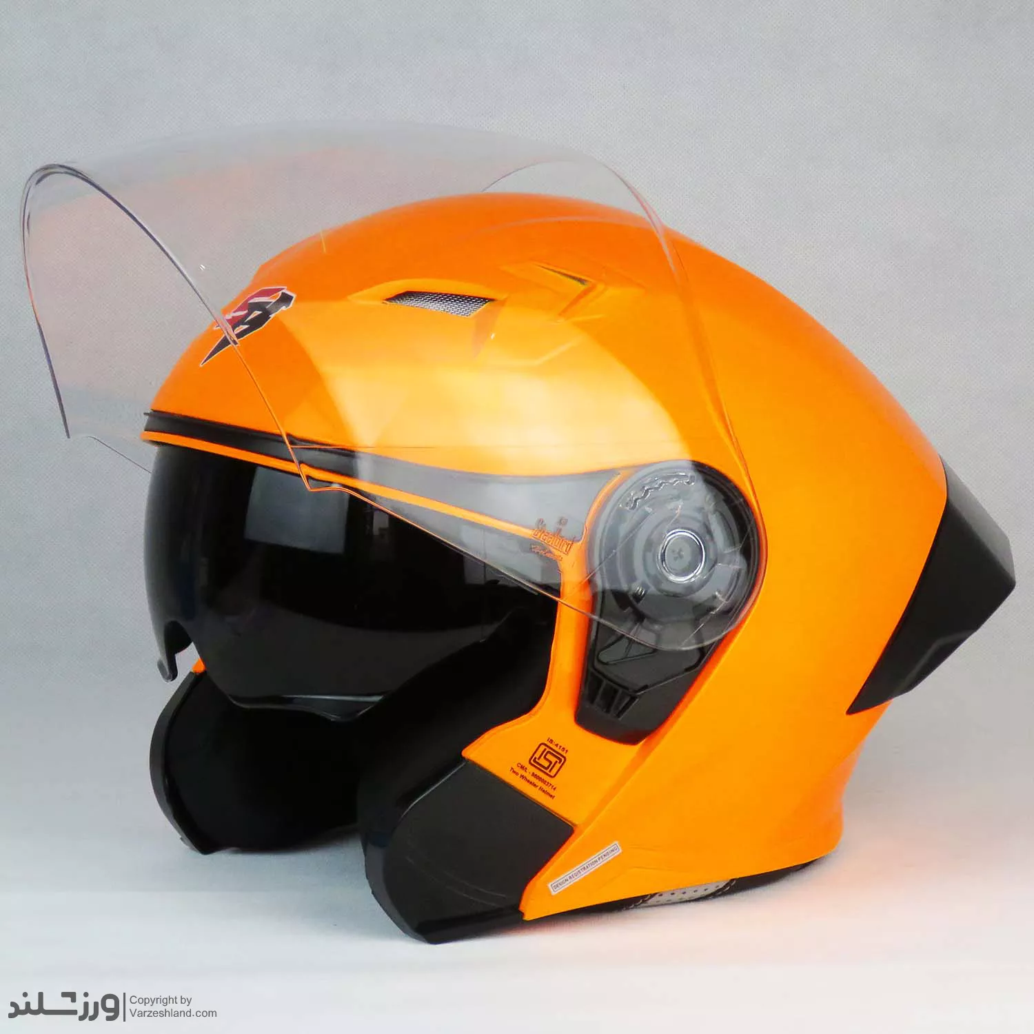 پوسته خارجی این کلاه از متریال مقاوم و سبک ساخته شده که در کنار وزن حدود 1250 گرم، فشار اضافی به گردن وارد نمی‌کند. وجود طلق شفاف مقاوم در برابر باد و گرد و غبار باعث محافظت بهتر از صورت شده و دید واضحی در شرایط مختلف رانندگی فراهم می‌کند. طراحی آیرودینامیک و رنگ نارنجی براق، ظاهری شیک و حرفه‌ای به این کلاه بخشیده است.