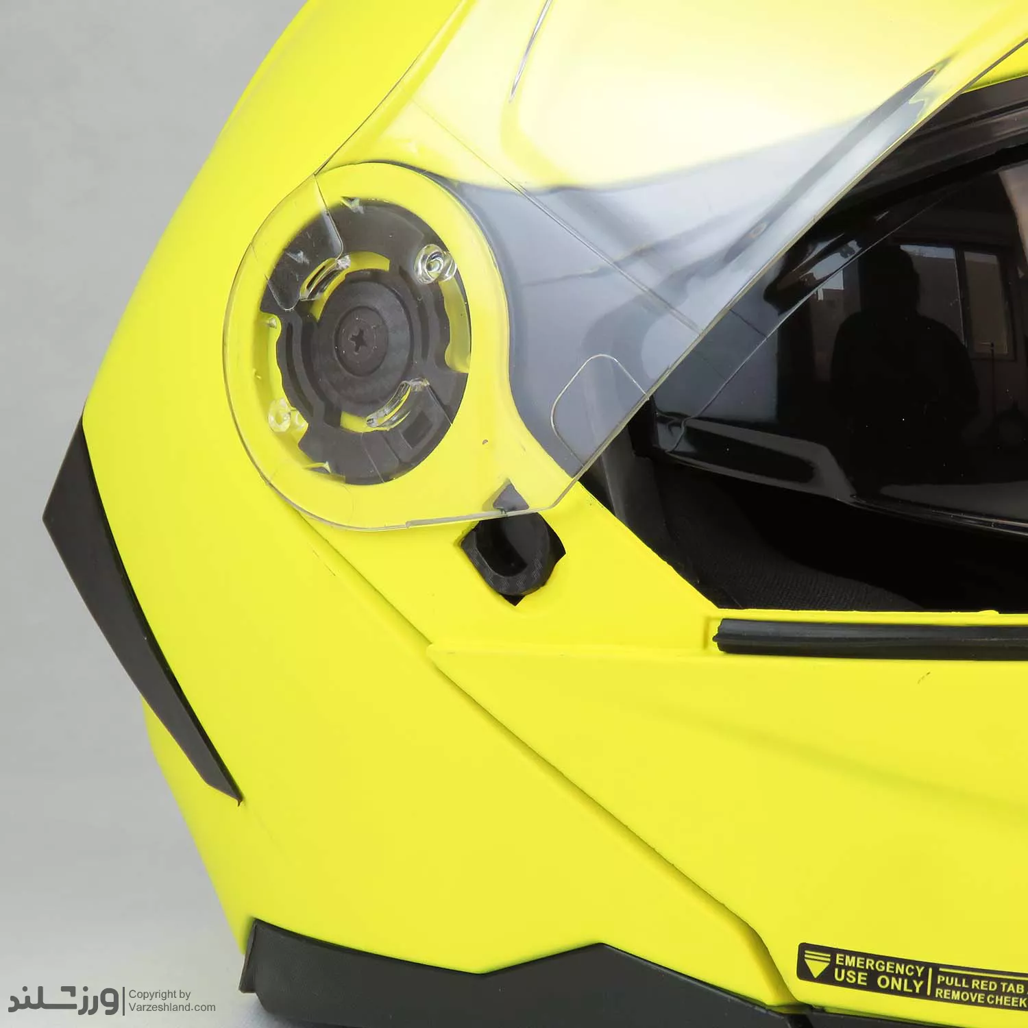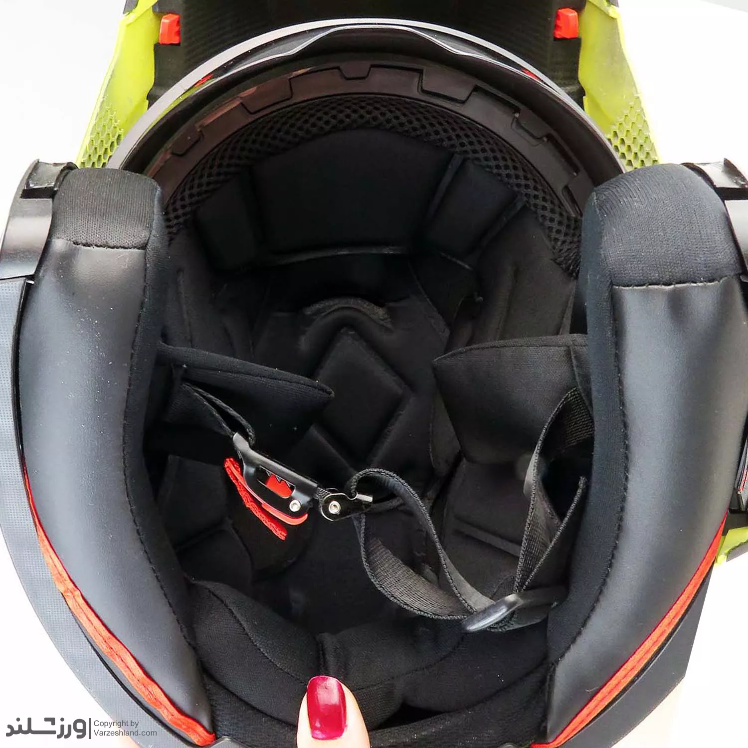 فک متحرک با قفل مکانیکی مطمئن، امکان تهویه سریع و راحت را بدون برداشتن کامل کلاه فراهم می‌کند. سیستم تهویه پیشرفته با منافذ جلو، بالای سر و خروجی پشت، جریان هوای تازه را تضمین کرده و از تعریق بیش‌ از حد جلوگیری می‌کند. پدهای داخلی نرم، ضدتعریق و قابل شستشو، استفاده طولانی‌مدت را کاملاً راحت می‌کنند.