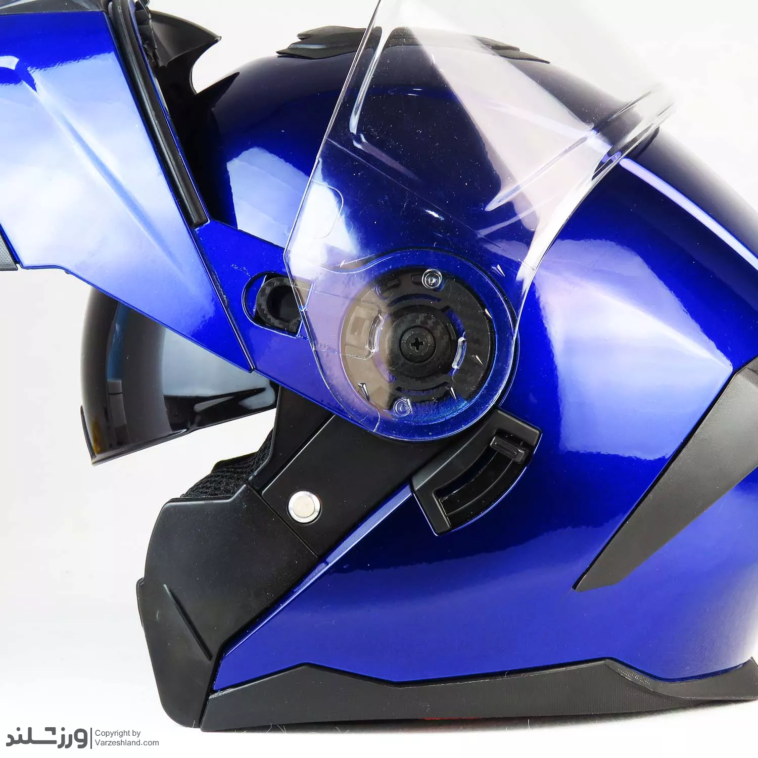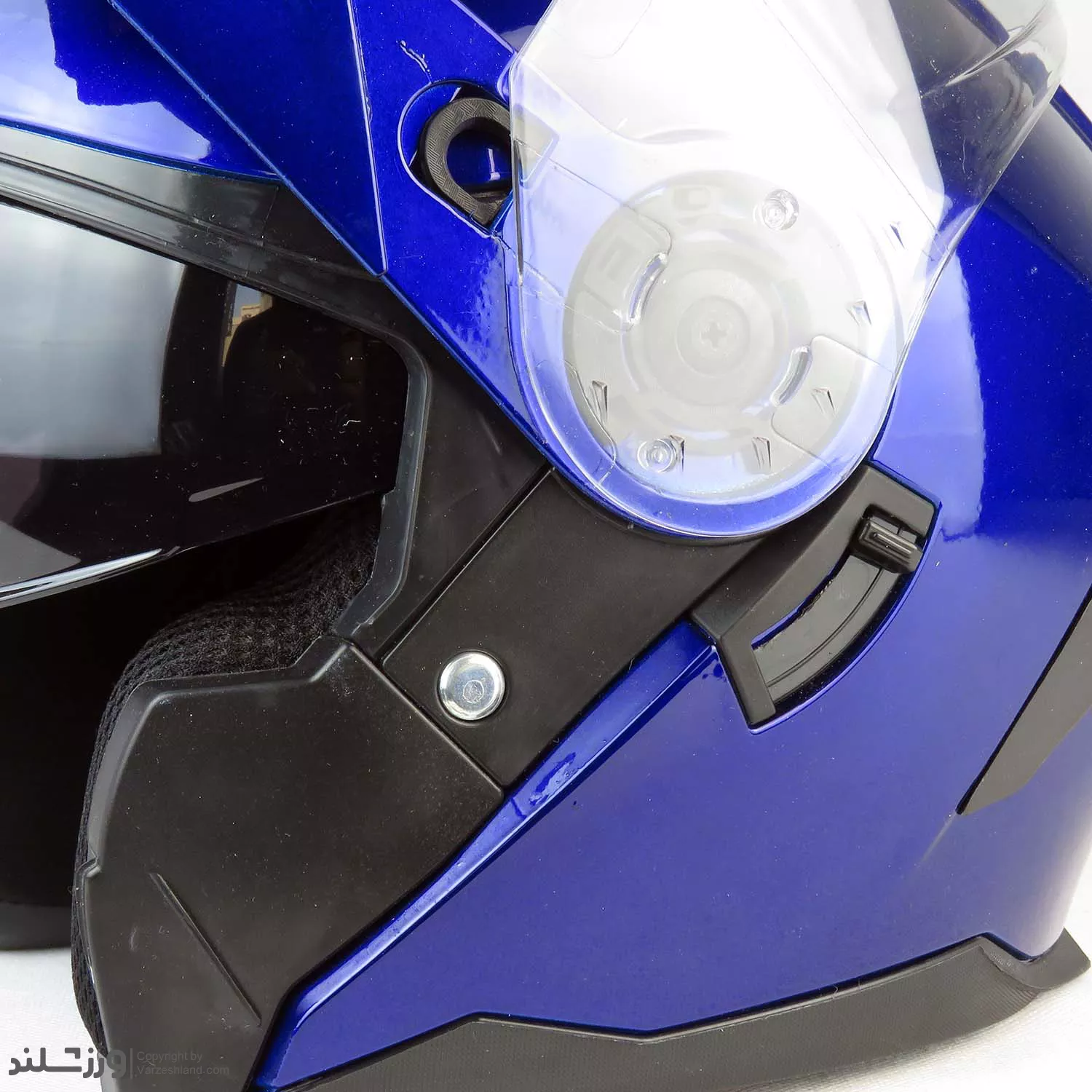 فک متحرک این کلاه کاسکت GlassyBlue با مکانیزم روان و قفل ایمنی، اجازه میدهد موتورسوار بدون برداشتن کلاه با دیگران صحبت کند، توقف کوتاه داشته باشد یا تهویه بیشتری دریافت کند. طلق شفاف ضدخش با زاویه دید وسیع و پوشش UV، رانندگی در روز و شب را کاملاً امن و استاندارد میکند. عینک دودی داخلی کشویی نیز یکی دیگر از ویژگی های مهم این نسخه است که بدون نیاز به تعویض طلق، محافظت چشم را در برابر آفتاب تأمین میکند.