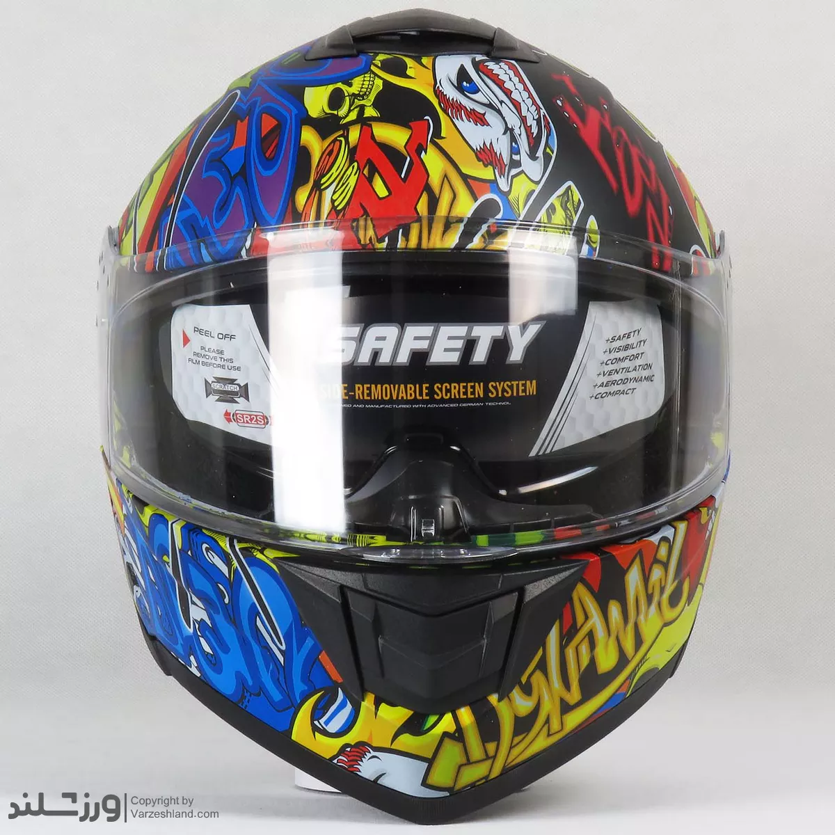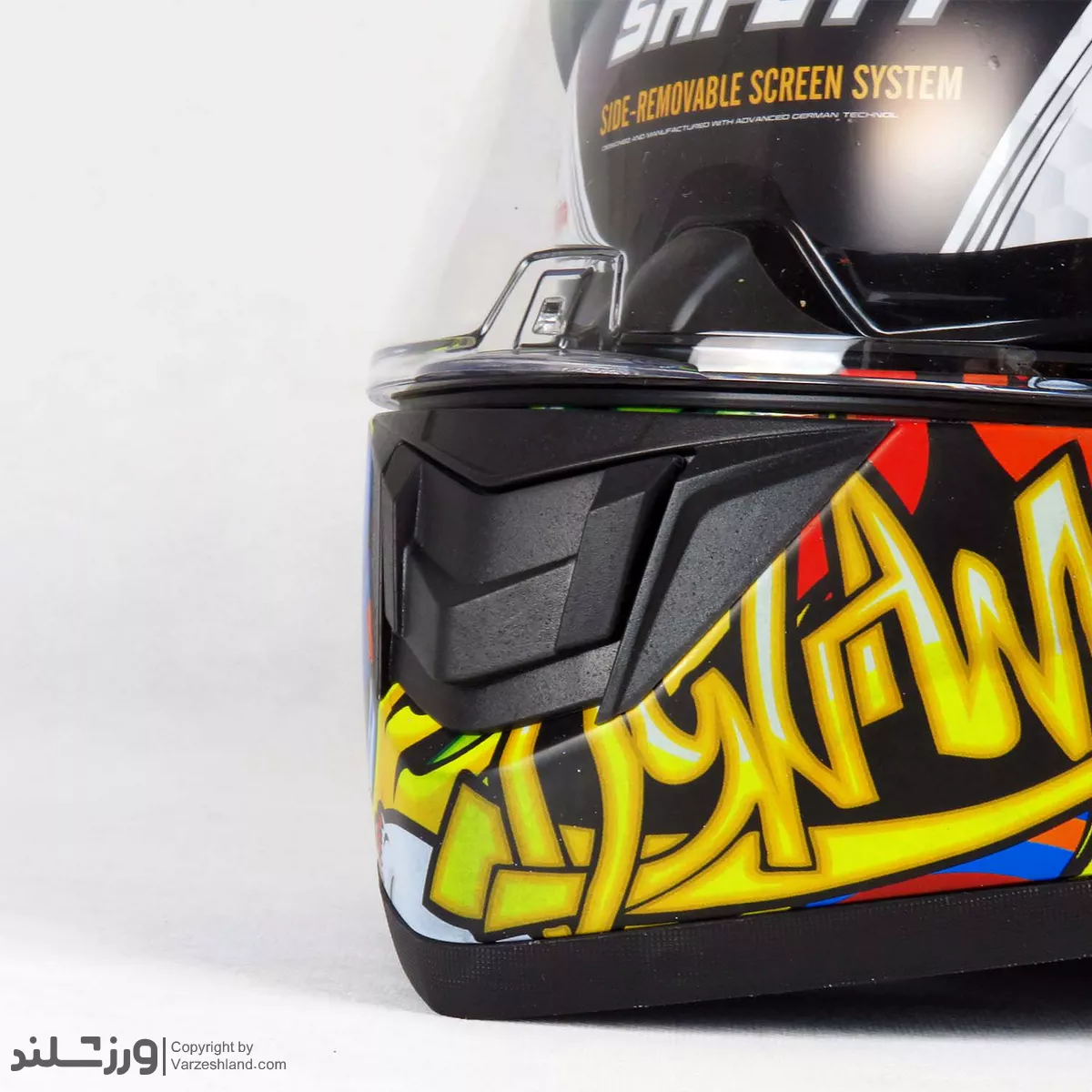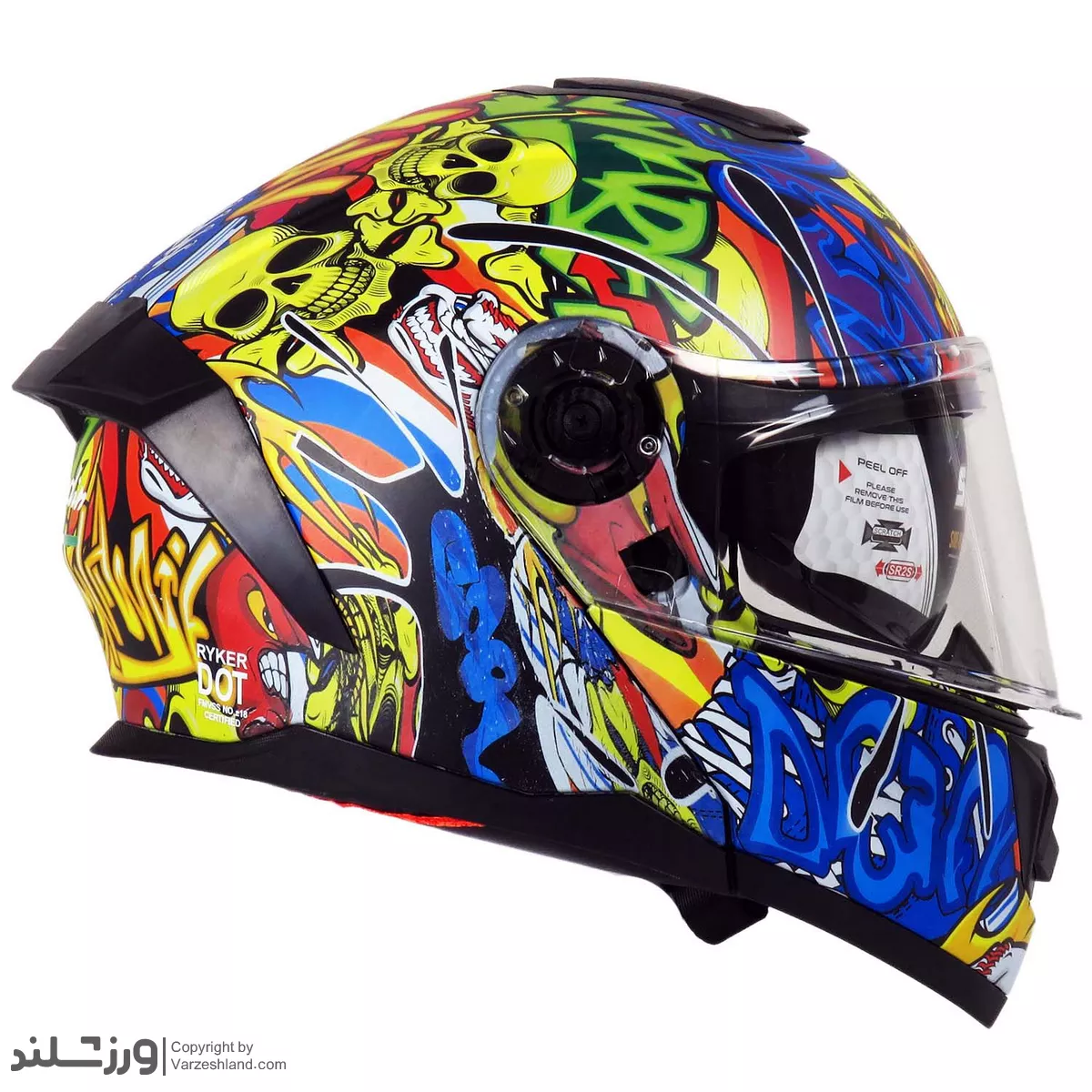کلاه کاسکت Graffix رادین کد 1949 با طراحی منحصر به فرد گرافیتی، انتخابی ایدهآل برای موتورسواران جوان و عاشقان استایل خیابانی است. این مدل ترکیبی از رنگهای زرد، آبی، قرمز، سفید و مشکی دارد و خطوط گرافیتی، اسکلتهای کارتونی و نوشتههای اسپرت آن، ظاهری پرانرژی و چشمگیر به کلاه بخشیده است.