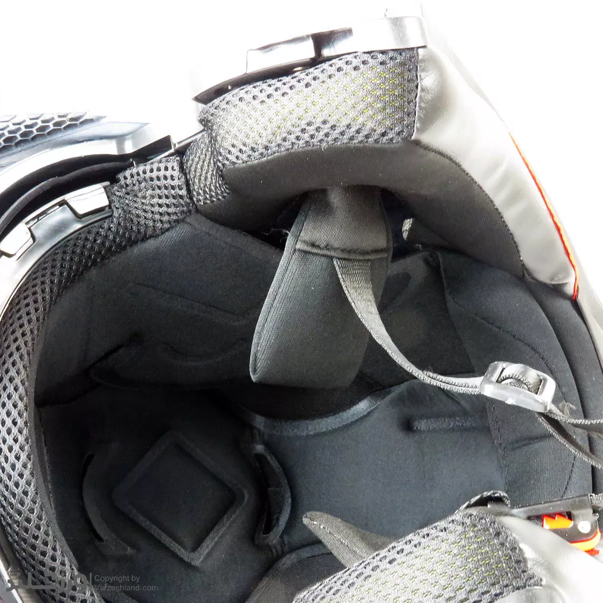 داخل کلاه کاسکت Graffix با پدهای نرم، ضخیم، ضد حساسیت و قابل شستوشو پوشیده شده و طراحی ارگونومیک آن، توزیع مناسب فشار روی سر و گونهها را ممکن میکند. بند Micrometric با ضامن آسان باز و بسته میشود و تنظیم دقیق فیت و ایمنی را تضمین میکند.