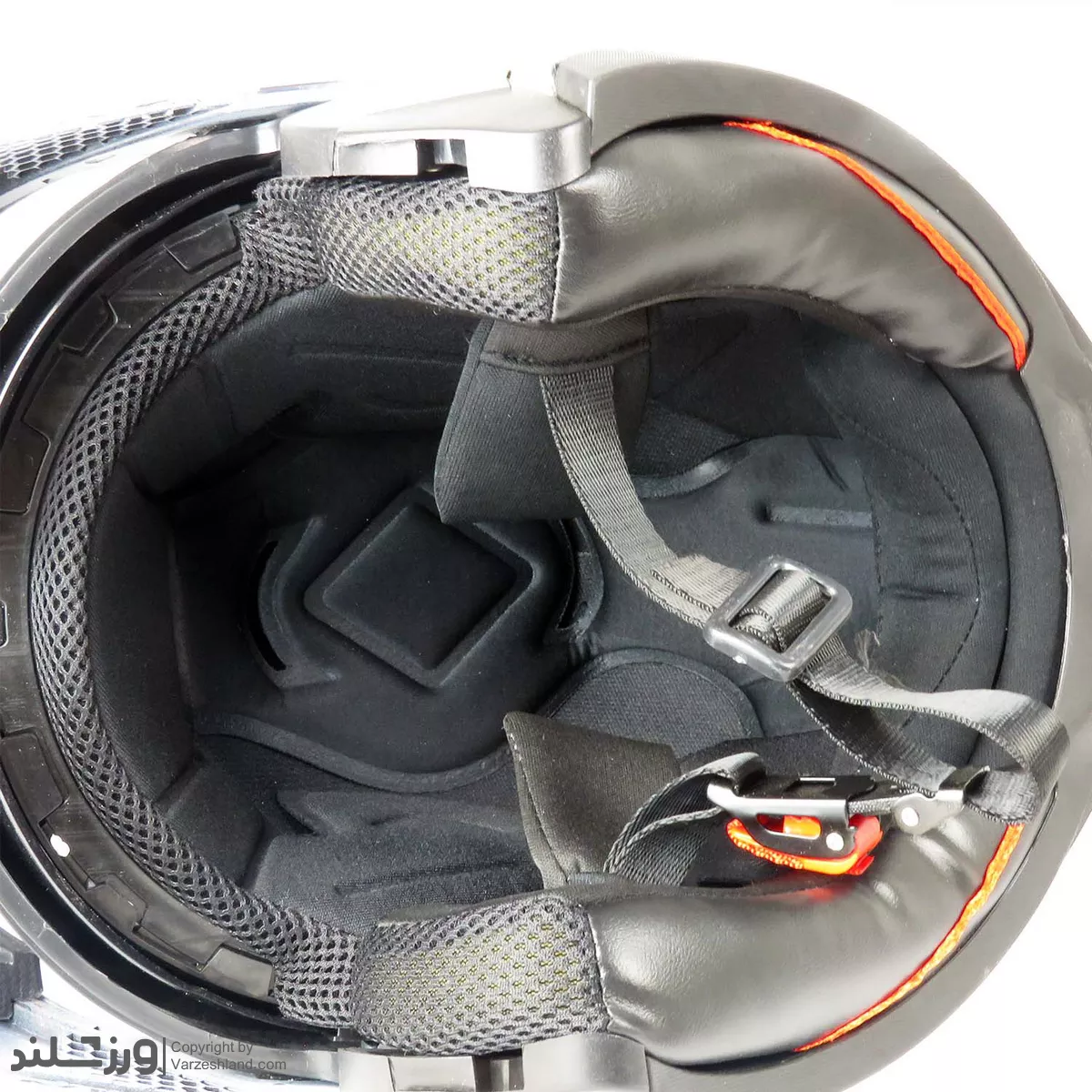 سیستم تهویه این کلاه شامل ورودی هوا در بخش چانه و پیشانی و خروجی هوای پشتی است که گردش هوای بهینه و راحتی حتی در مسیرهای طولانی و هوای گرم را تضمین میکند. همچنین، طلق شفاف بیرونی مقاوم در برابر خط و خش و عینک دودی داخلی کشویی با دکمه جانبی، محافظت کامل در برابر باد، گرد و غبار و تابش خورشید را ارائه میدهد.