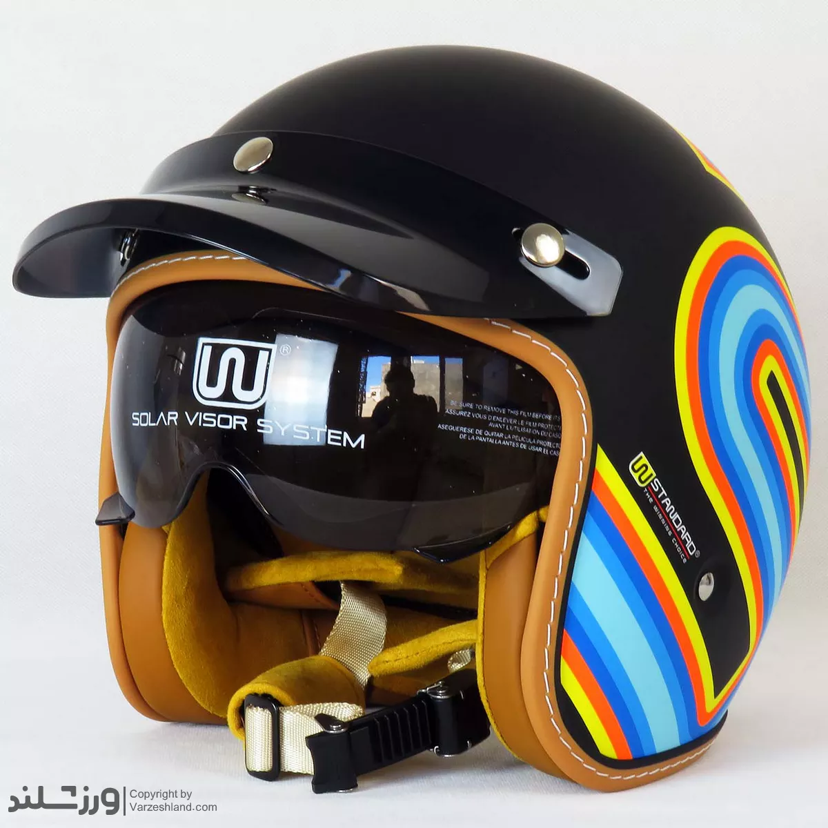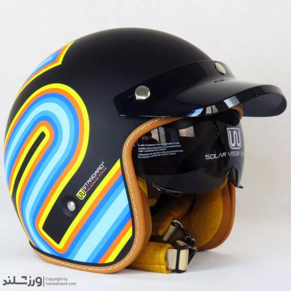 کلاه کاسکت Retro وسپایی کد 1937 یک کلاه ریترو زیبا و مقاوم است که با طراحی گرافیکی رنگی، بدنه ABS ضربهگیر و ویزور آفتابگیر کوتاه، انتخابی ایدهآل برای استفاده شهری محسوب میشود. این کلاه کاسکت با لبه چرمی، بند سریع بازشونده و فوم داخلی ضدتعریق، راحتی و امنیت را همزمان ارائه میدهد. مناسب موتورهای وسپا، اسکوتر و مدل های کلاسیک.از برند معتبر WStandard در سایزهای XL و 2XL عرضه می شود.