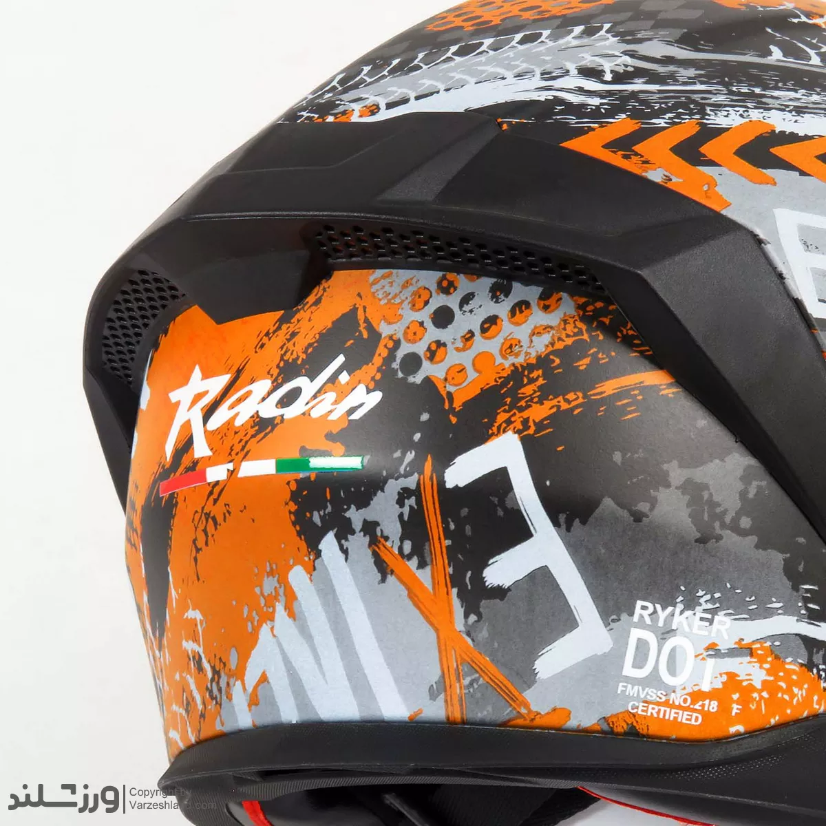 کلاه کاسکت StormStrike رادین کد 1944 یک انتخاب ایده آل برای موتورسواری شهری و برونشهری است؛ کلاهی که ظاهر پرانرژی و گرافیکی آن در همان نگاه اول حس سرعت، آزادی و ماجراجویی را منتقل میکند. ترکیب رنگ نارنجی، مشکی و خاکستری و طرحهای اکستریم الهام گرفته از رد لاستیک و خطوط اسپرت، این مدل را به یکی از جذابترین گزینهها برای سوارکارانی تبدیل کرده که علاوه بر ایمنی، به استایل خود نیز اهمیت میدهند.