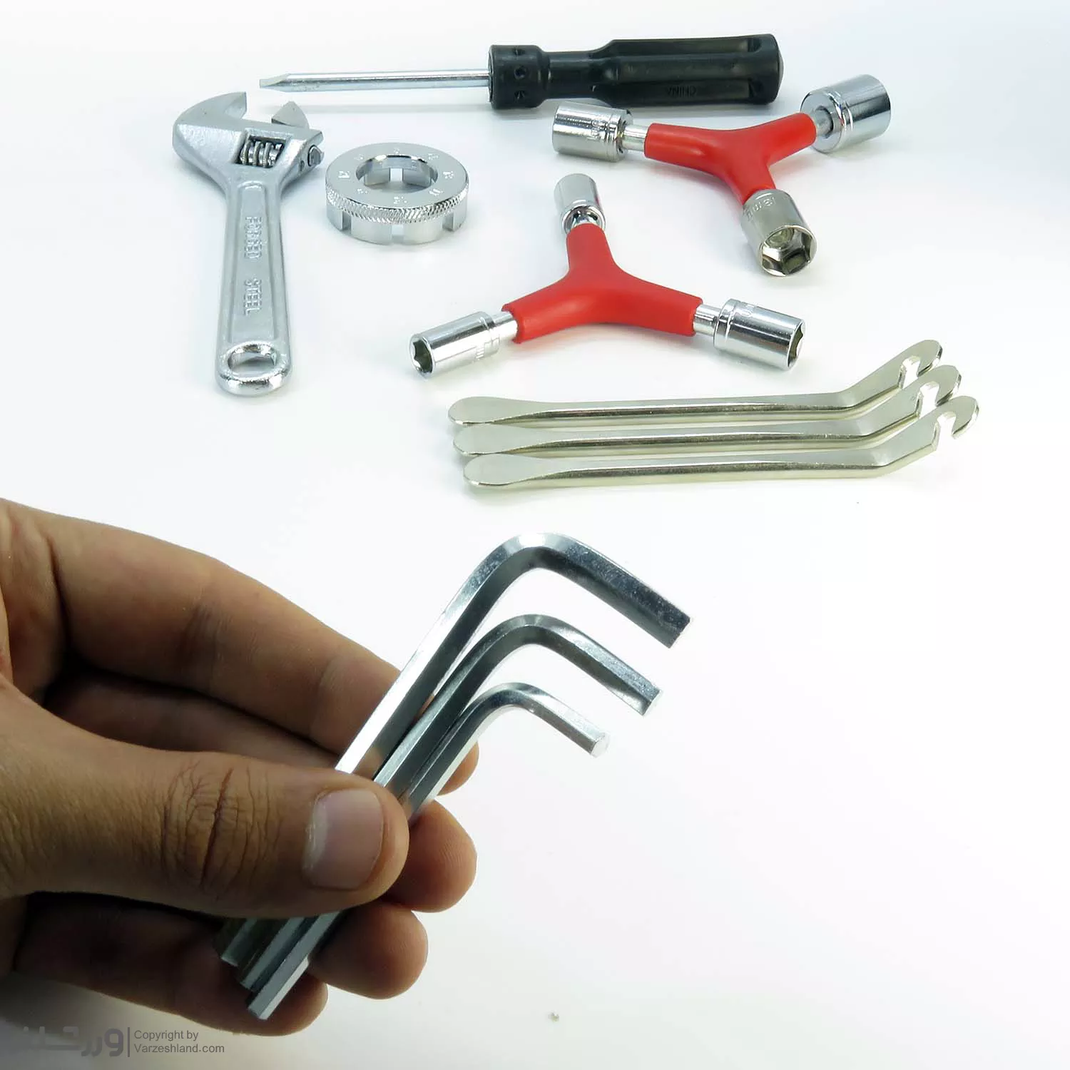 درون کیف آچار کامل ، مجموعه ای از آچارهای متنوع وجود دارد که نیاز هر دوچرخه سوار یا تعمیرکار خانگی را برطرف میکند. آچار فرانسه برای باز و بست قطعات مختلف با اندازه های گوناگون مناسب است. مجموعه آچار های آلن در سایزهای مختلف نیز برای تنظیم ترمز، زین، فرمان و سایر بخش های دوچرخه کاربرد فراوان دارند. دو آچار سه راهی قرمز با سرهای مختلف، کار تعمیر و تنظیم را بسیار آسان تر میکنند.