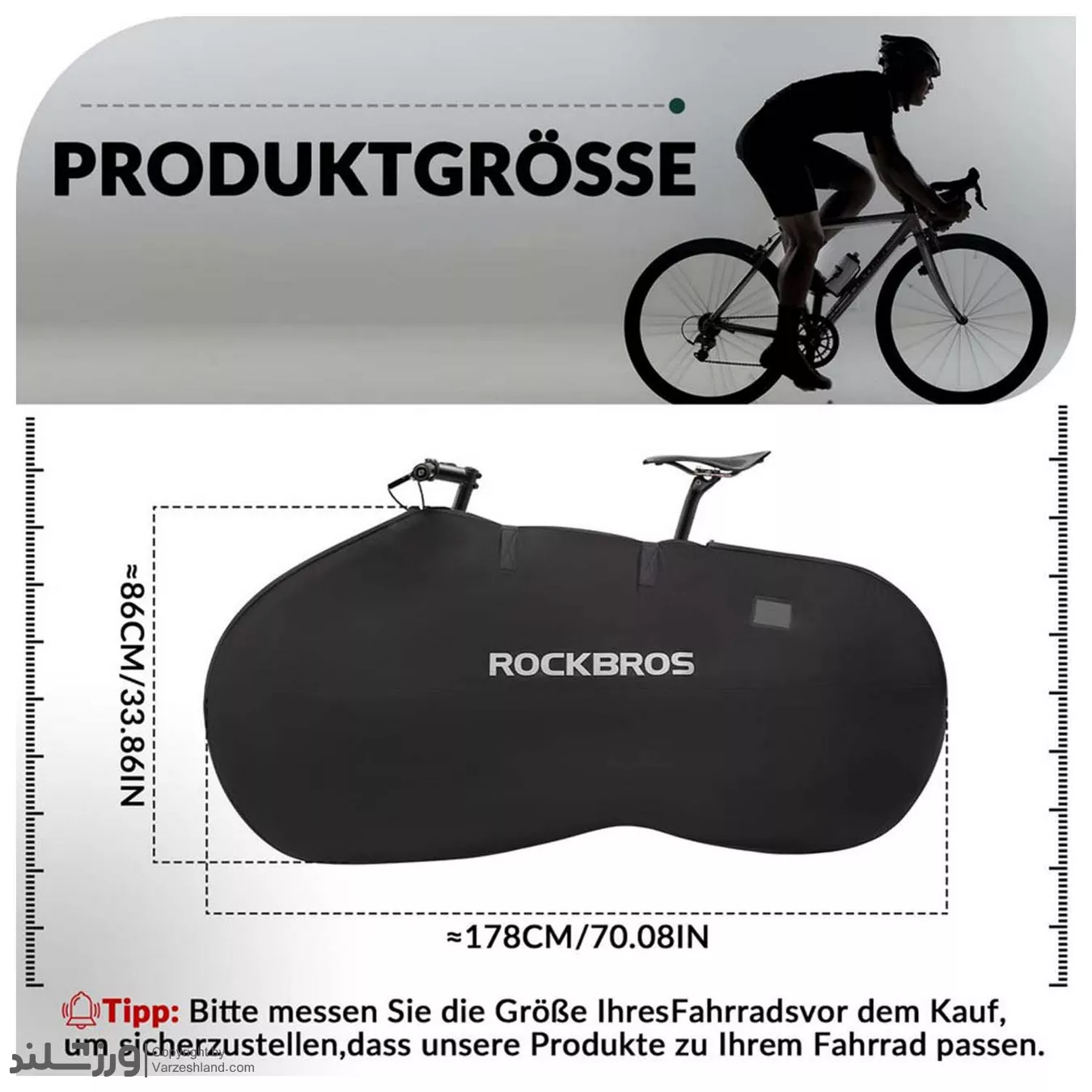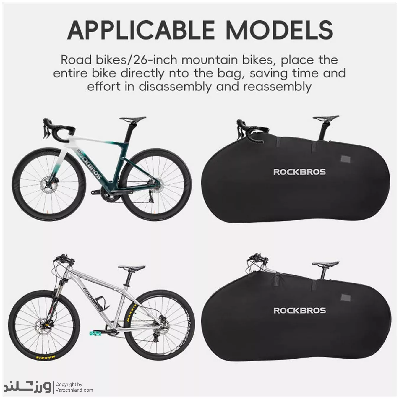 ✔ این کیف حمل دوچرخه ROCKBROS با سایز مناسب برای دوچرخههای جادهای و کوهستان تا ۲۶ اینچ طراحی شده است و با ابعاد بزرگ اجازه میدهد دوچرخه را بدون جدا کردن قطعات زیاد درون آن قرار دهید.