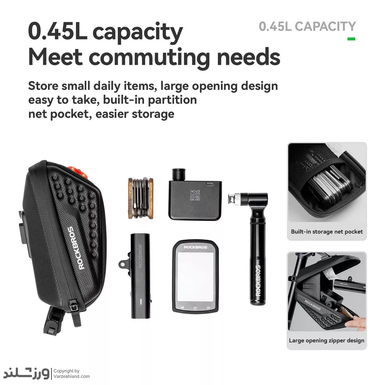 مشخصات کیف زیر زین ضد آب چراغ دار هوشمند راک براس کد 2051
