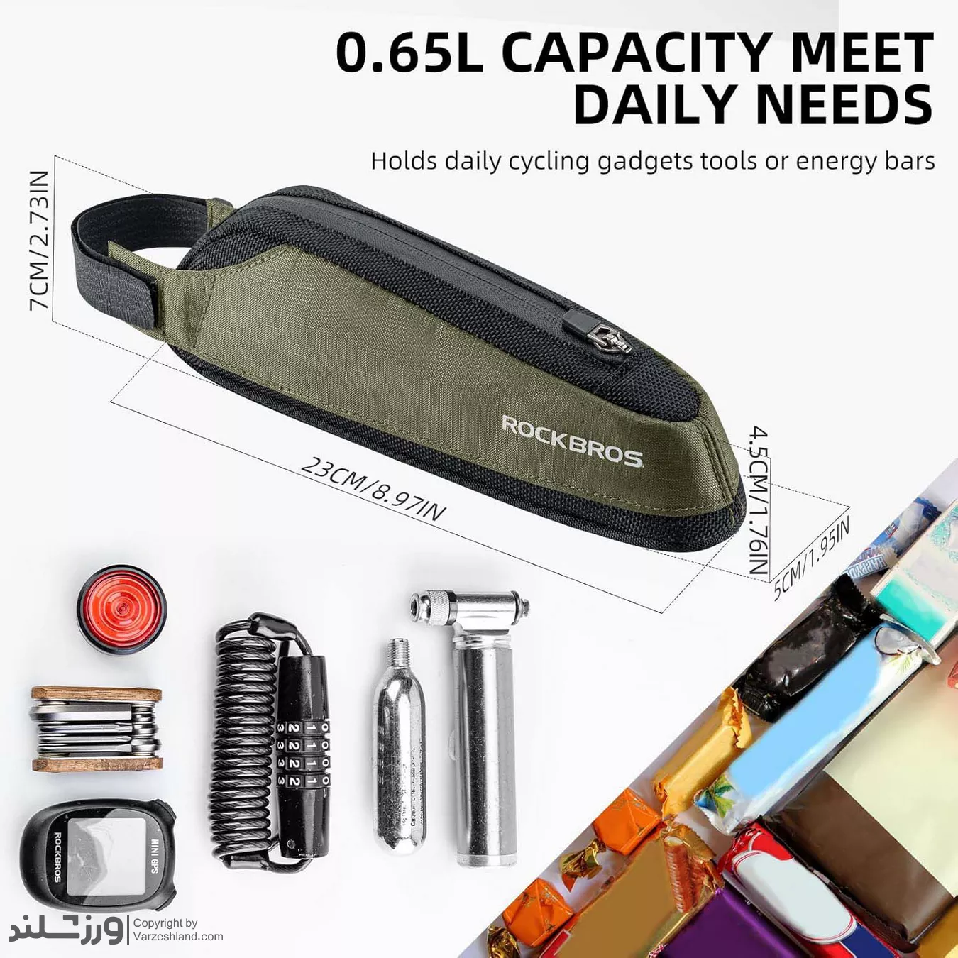 این کیف Rockbros برای دوچرخه کاملاً مناسب بوده و به راحتی روی فریم نصب میشود. طراحی باریک آن باعث میشود هنگام رکاب زدن هیچ مزاحمتی ایجاد نشود. ظرفیت حدود 0.65 لیتر فضای کافی برای قرار دادن ابزارهای تعمیر کوچک، تیوب، کلید، پول یا تنقلات فراهم میکند. وزن بسیار کم کیف نیز باعث میشود تعادل و هندلینگ دوچرخه حفظ شود.