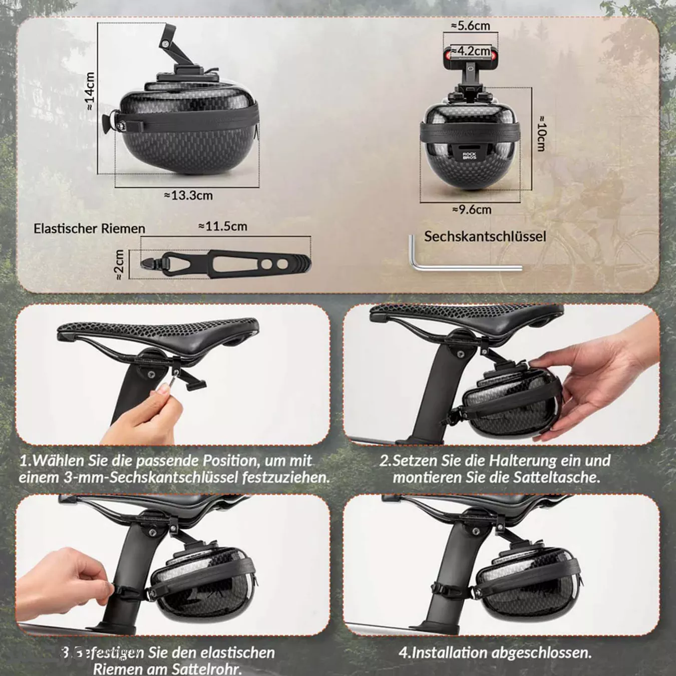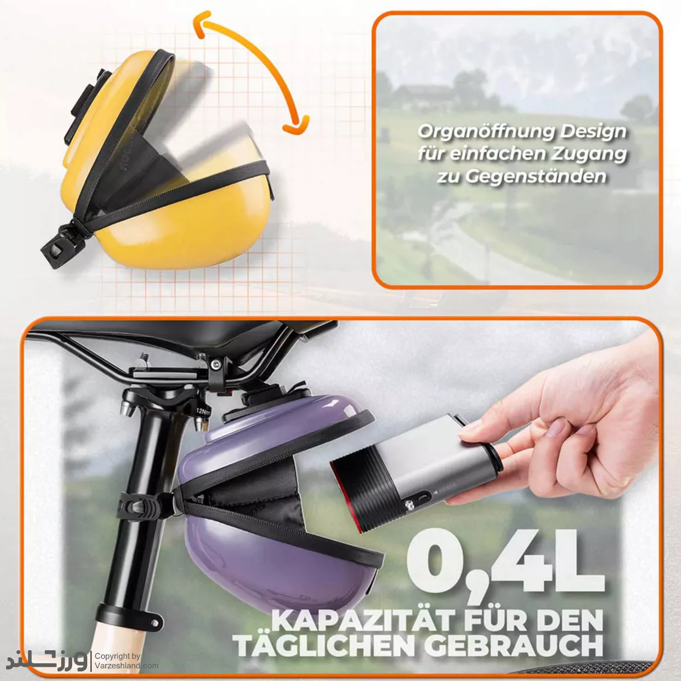 ✔ نصب آسان و ثابت: سه بند چسبی (Velcro) برای نصب زیر زین دوچرخه که کیف را بدون لرزش نگه میدارد