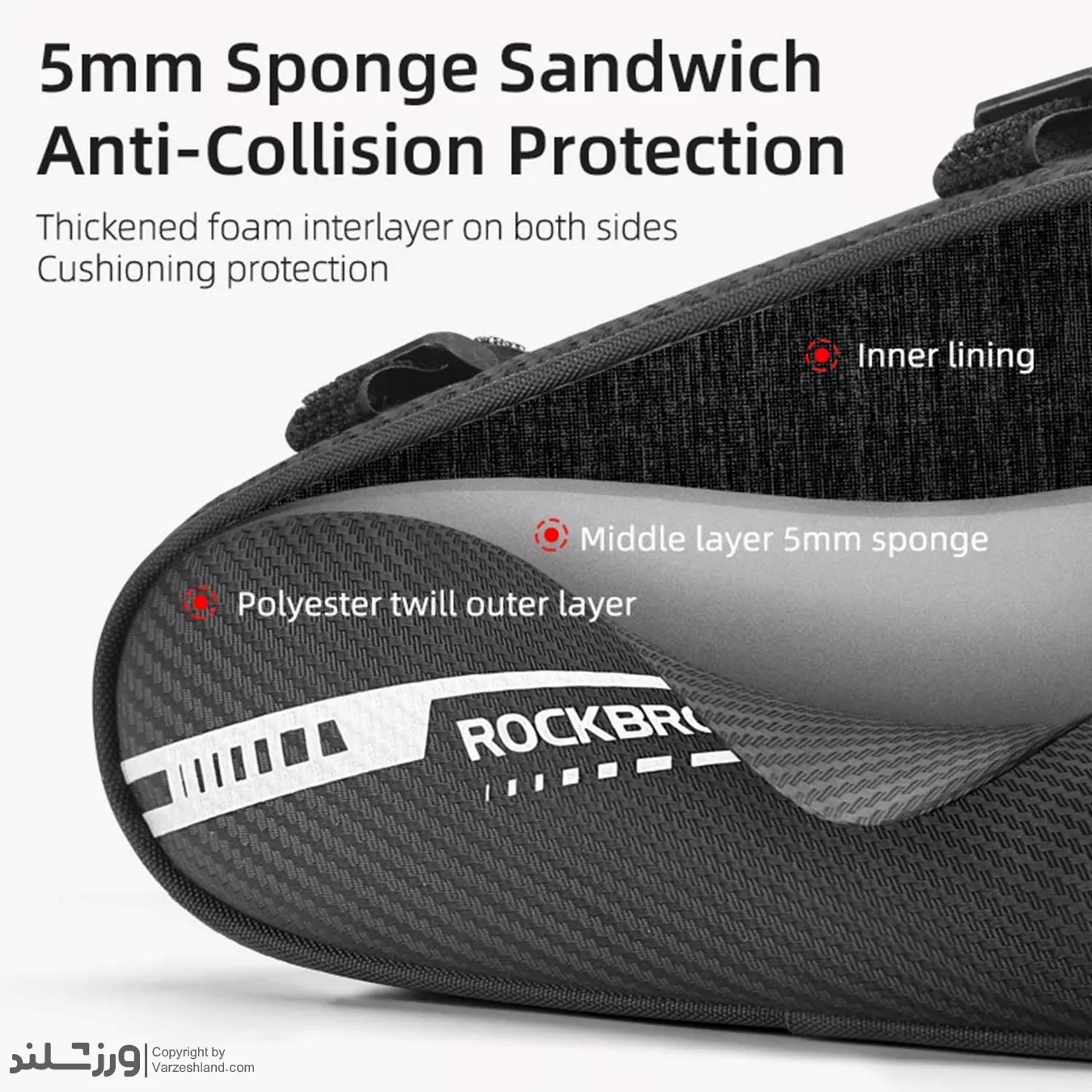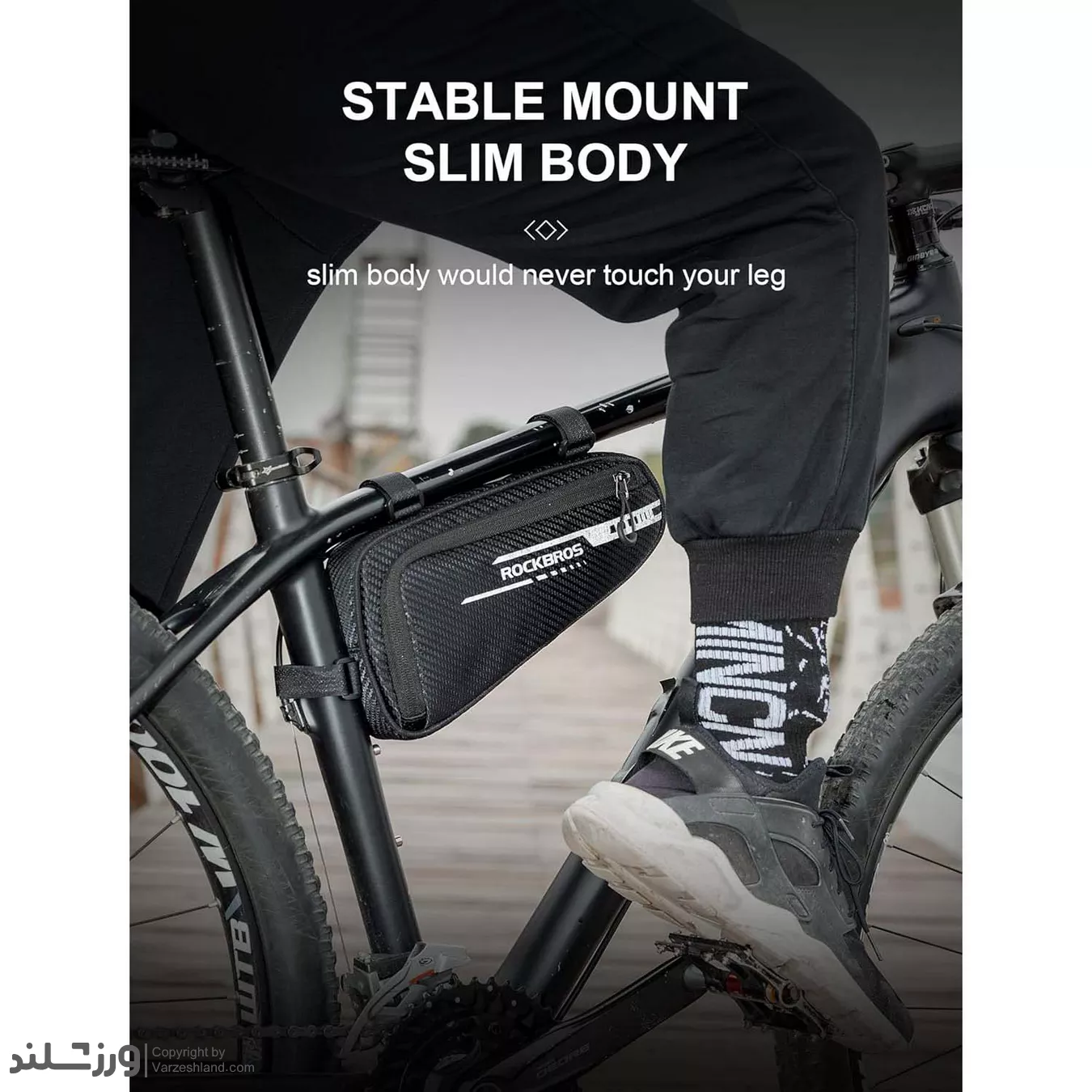 طراحی زاویه دار و باریک کیف RockBros باعث میشود هنگام دوچرخه سواری یا موتور سواری، هیچ گونه مزاحمتی برای پا یا فرمان ایجاد نکند و در سرعت های بالاتر نیز کاملاً پایدار باقی بماند.