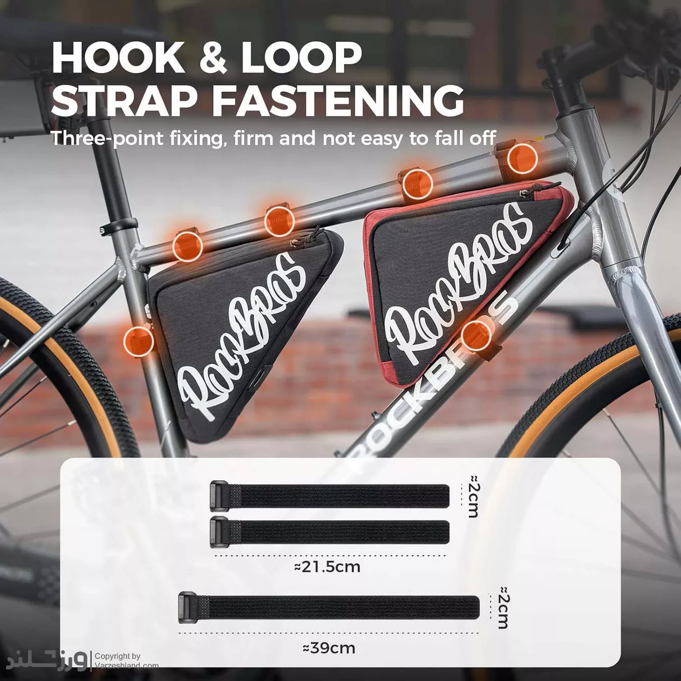 ۳ بند محکم چسبی (Velcro) برای اتصال به لولههای قاب دوچرخه (ثبات بالا هنگام حرکت)