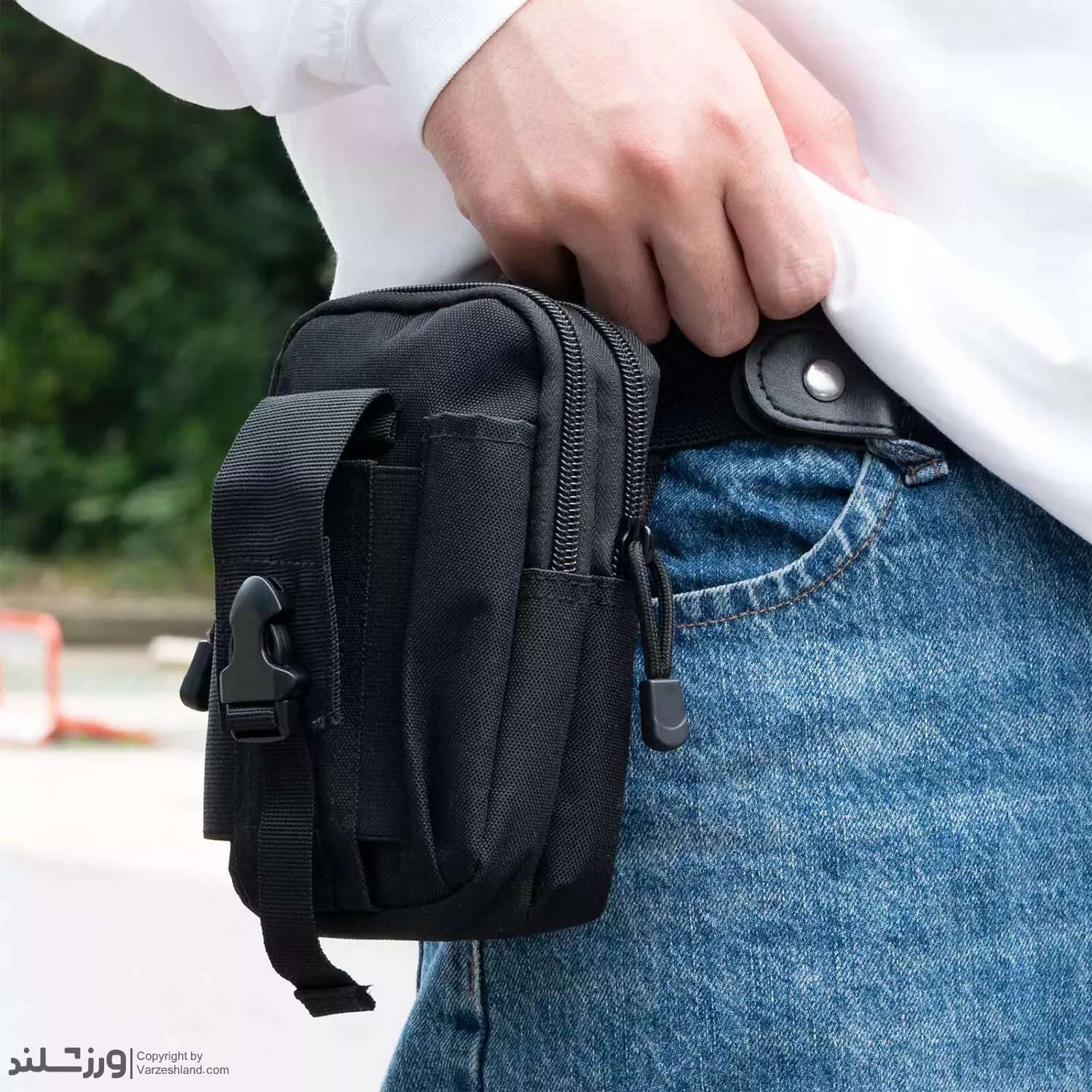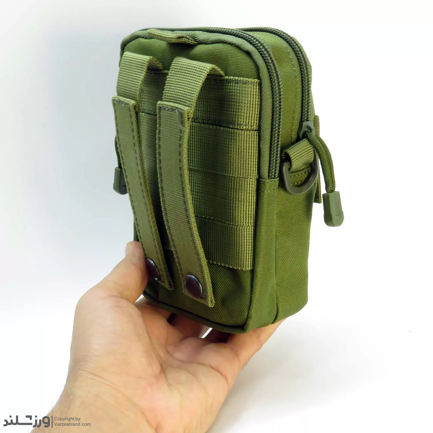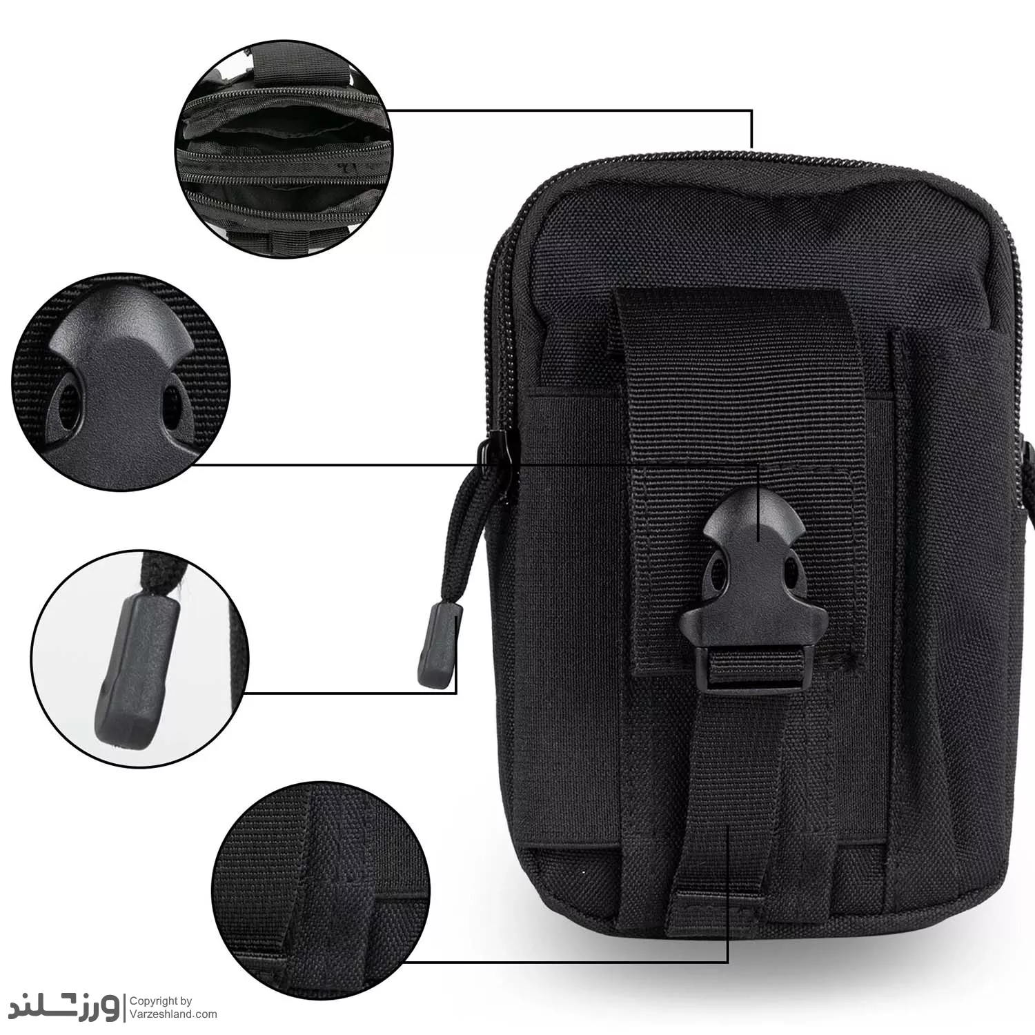 در قسمت پشت کیف، دو بند مقاوم با قفل دکمهای فلزی و سیستم MOLLE طراحی شده که امکان نصب آن را به کمربند، کولهپشتی یا تجهیزات نظامی فراهم میکند. به همین دلیل، این محصول برای نیروهای امدادی، موتورسواران، طبیعتگردان و افرادی که به نظم و دسترسی سریع به وسایل خود اهمیت میدهند، گزینهای ایدهآل است.