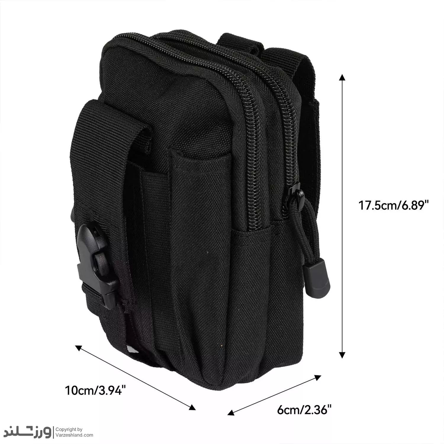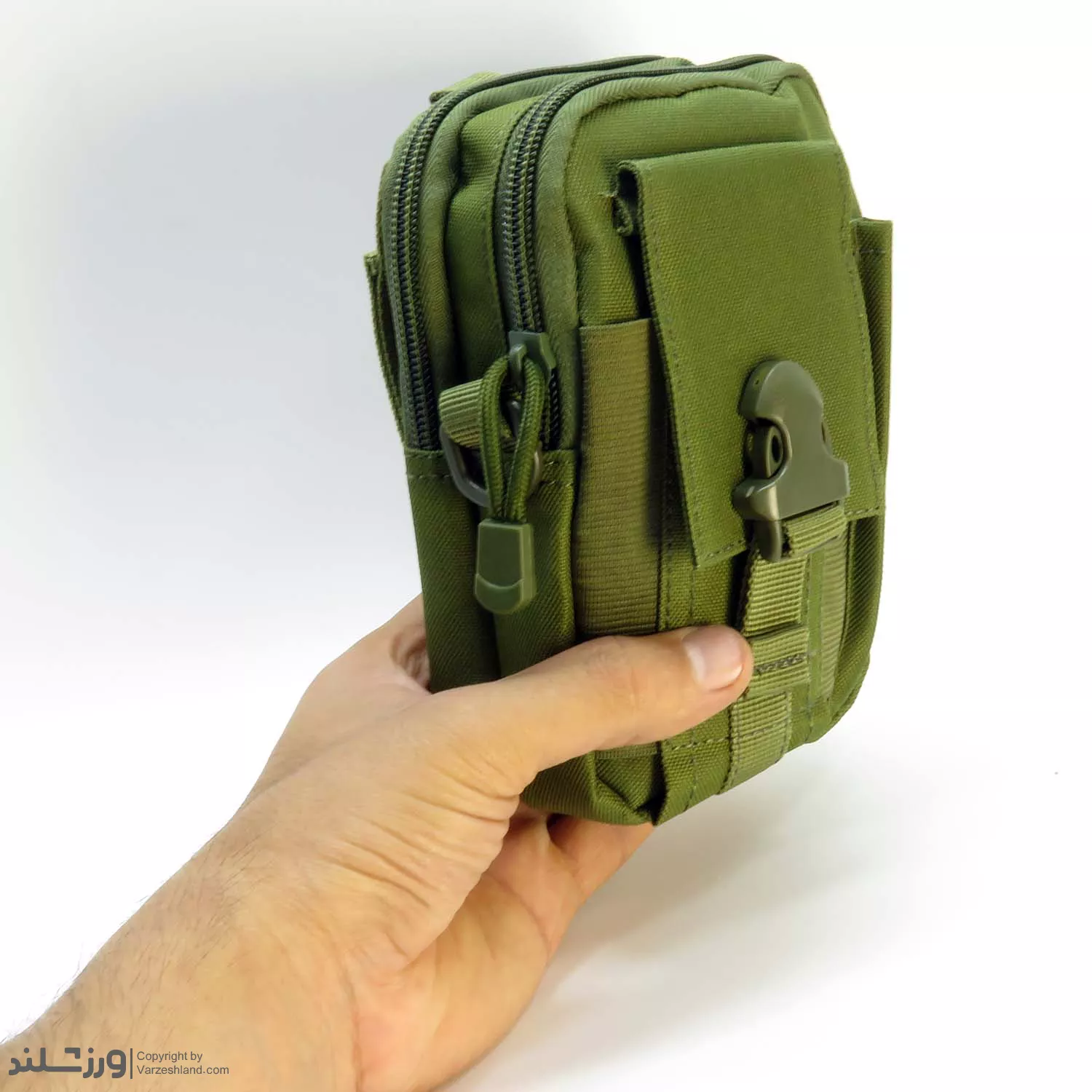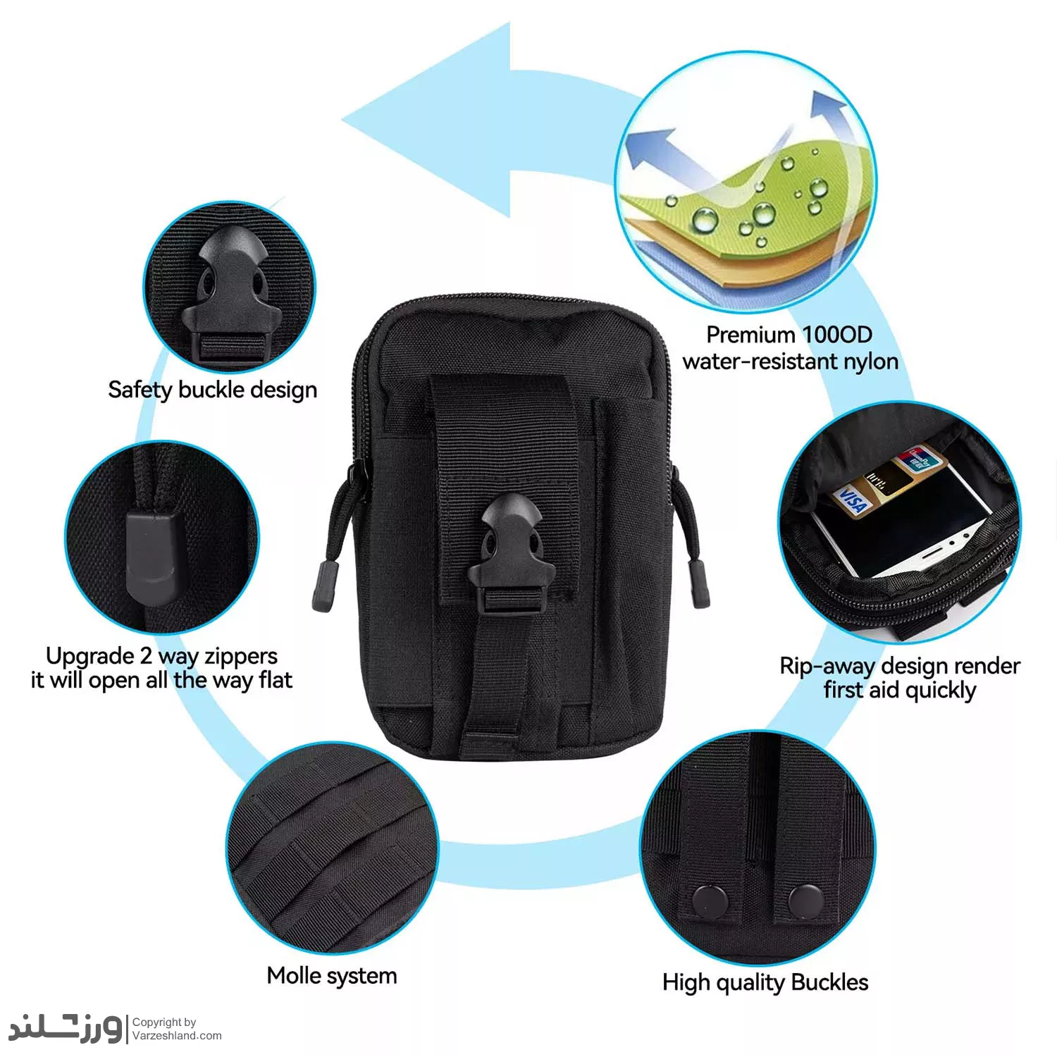 در قسمت پشت کیف، دو بند مقاوم با قفل دکمهای فلزی و سیستم MOLLE طراحی شده که امکان نصب آن را به کمربند، کولهپشتی یا تجهیزات نظامی فراهم میکند. به همین دلیل، این محصول برای نیروهای امدادی، موتورسواران، طبیعتگردان و افرادی که به نظم و دسترسی سریع به وسایل خود اهمیت میدهند، گزینهای ایدهآل است.