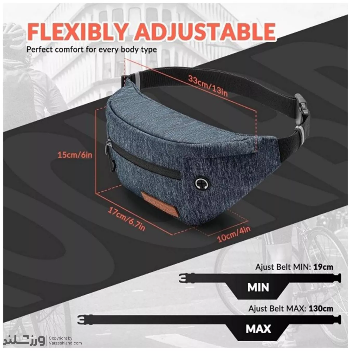 📏 طول بند قابلتنظیم: حدود 19 تا 130 سانتیمتر