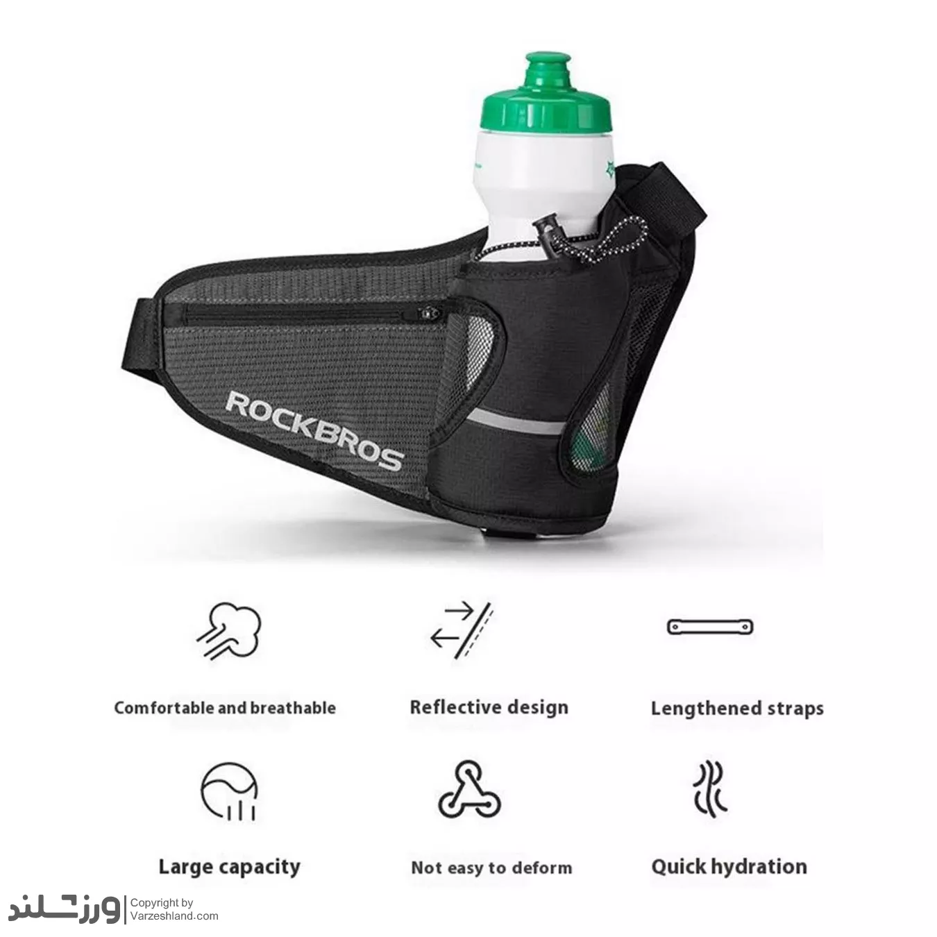 کیف کمری RockBros دارای محفظه مخصوص بطری آب، جیب زیپ دار برای موبایل، کلید و وسایل ضروری است و بند کمری قابل تنظیم آن باعث ثبات کامل کیف در حین حرکت میشود. وجود لوگوی شبتاب (Reflective) ایمنی شما را در نور کم افزایش میدهد. اگر به دنبال یک کیف کمری سبک، بادوام و کاربردی برای ورزش و استفاده روزمره هستید، راک براس انتخابی هوشمندانه و مطمئن خواهد بود.